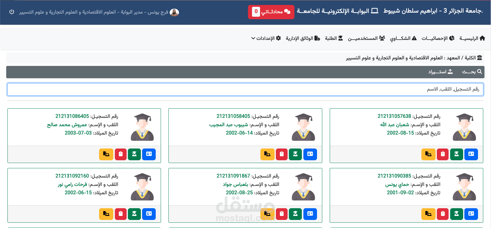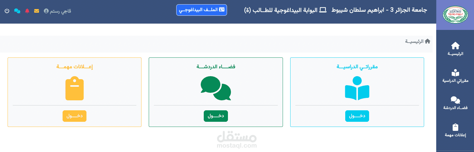 - الدخول الى الملف الشخصي و معاينة الرسائل الواردة و الاشعارات الإدارية