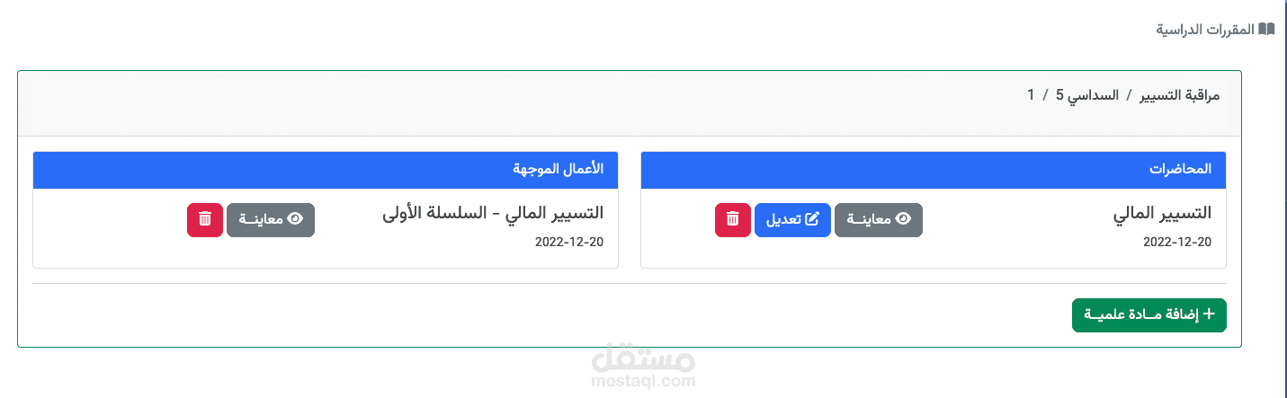 - وضع الدروس و الأعمال التطبيقية للطلاب