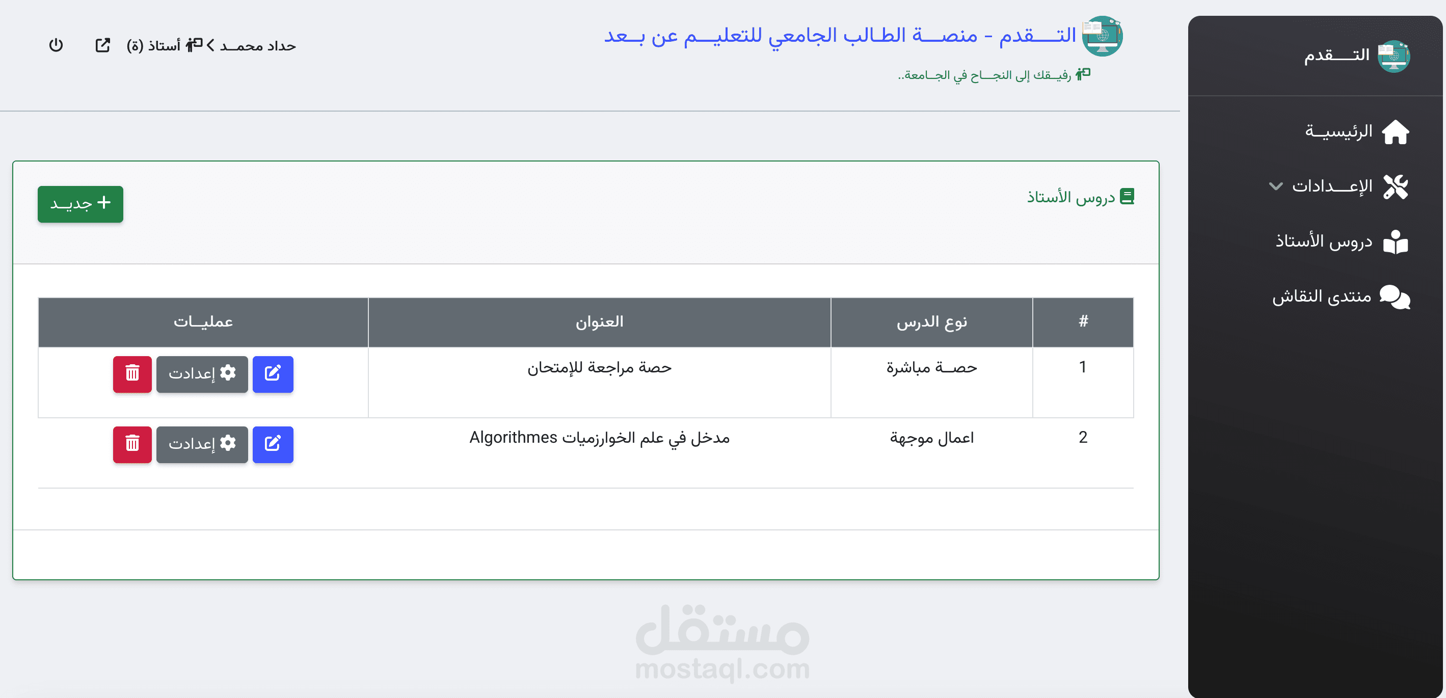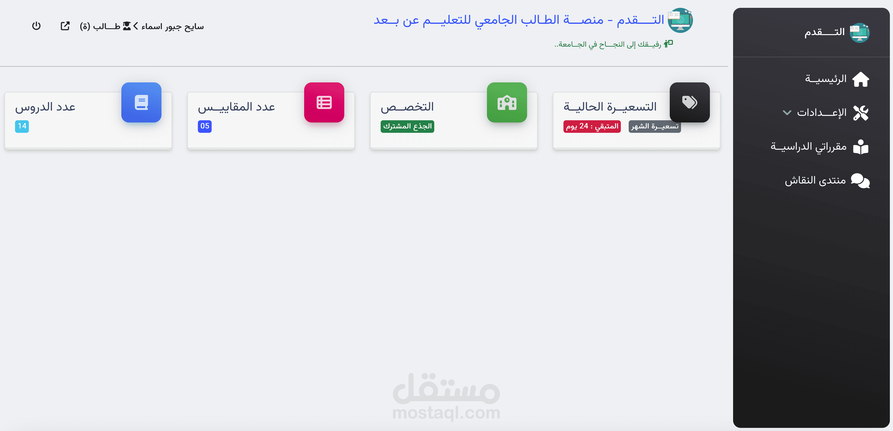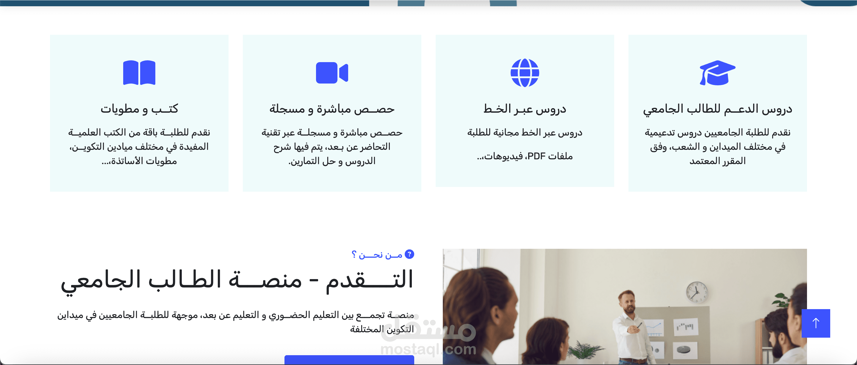 التــــقدم - منصـــة الطـالب الجامعي للتعليـــم عن بــعد: هي عبارة عن منصة ويب تتيح للطلاب الدراسة و مراجعة دروسهم عن بعد، حيث تتيح لهم: