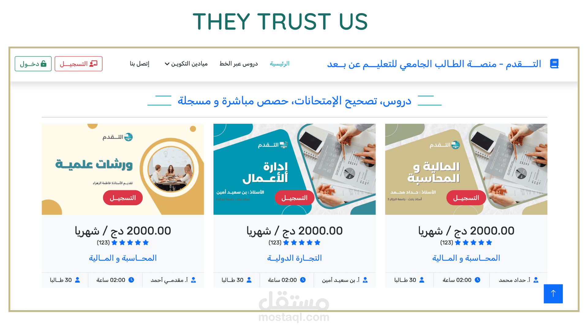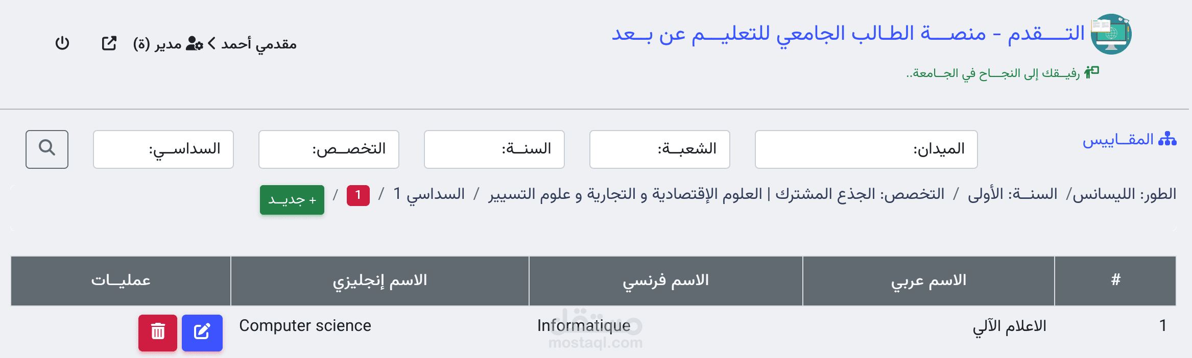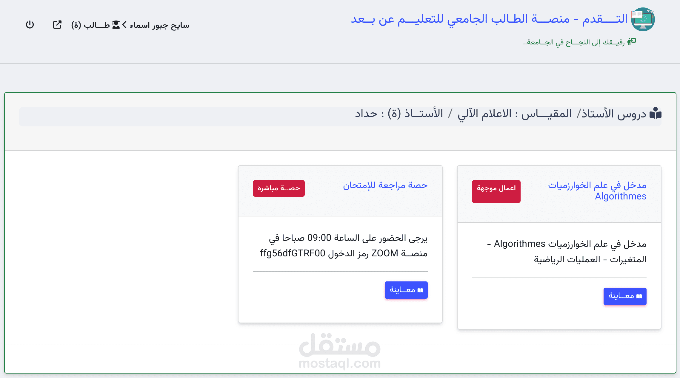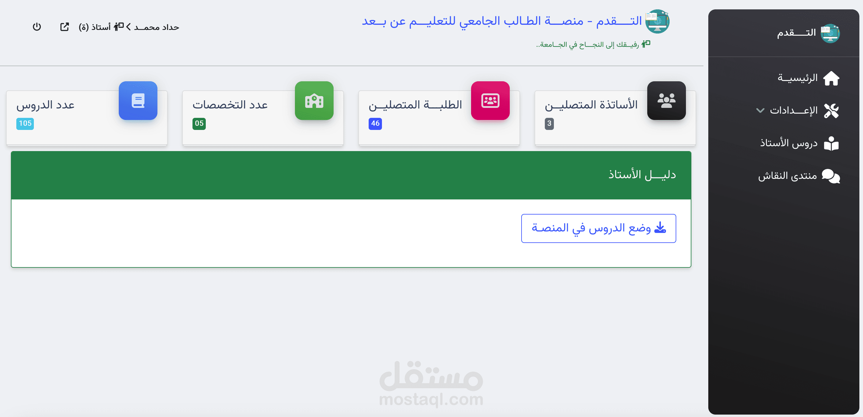 التــــقدم - منصـــة الطـالب الجامعي للتعليـــم عن بــعد: هي عبارة عن منصة ويب تتيح للطلاب الدراسة و مراجعة دروسهم عن بعد، حيث تتيح لهم: