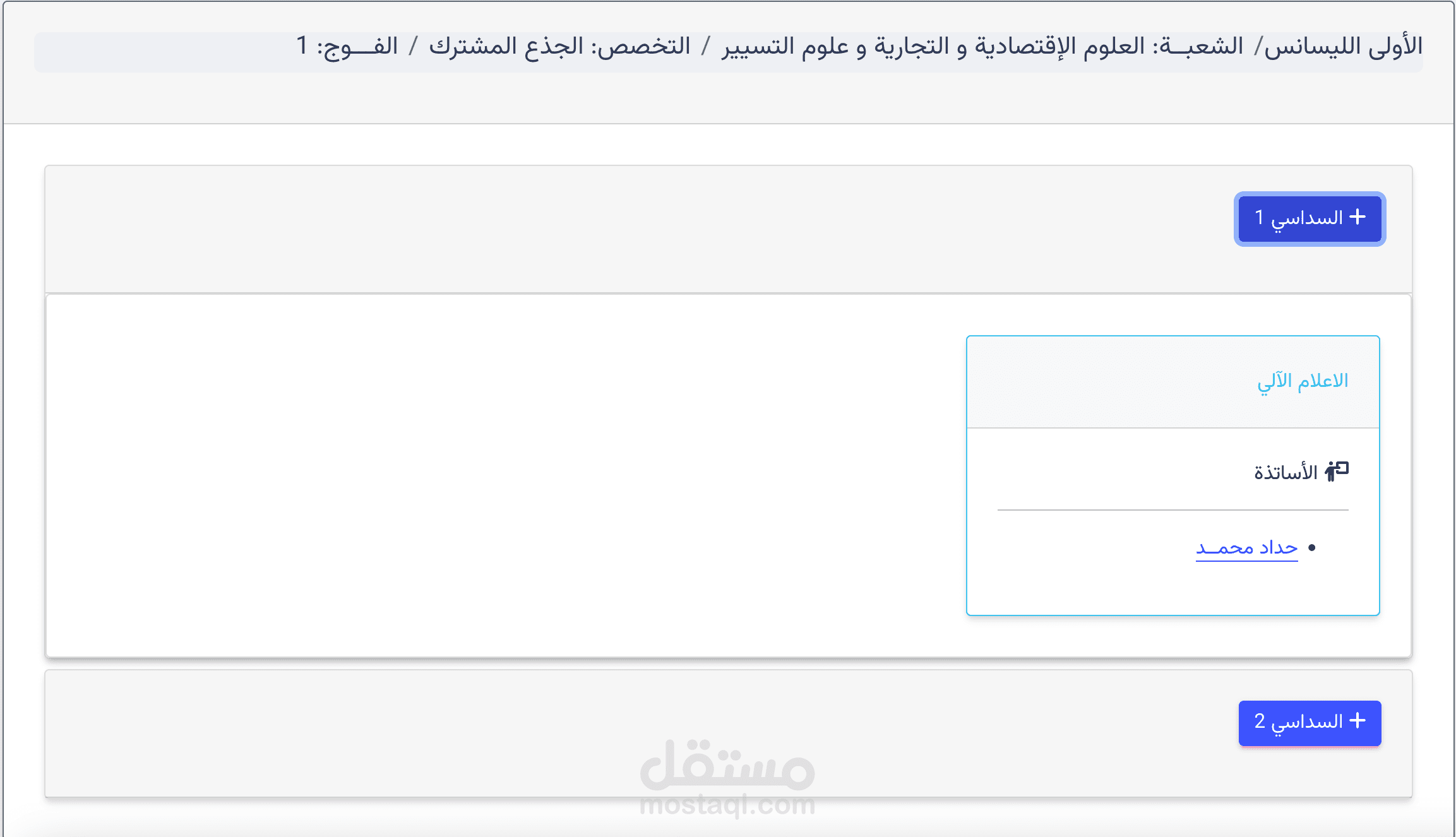 - الدخول الى الملف الشخصي و معاينة المعلومات البيداغوجية(التخصص، الأفواج)