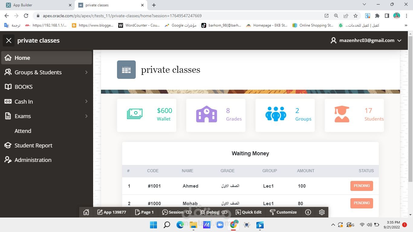 سيستم لتنظيم الدروس الخصوصيه تنظيم خضور الطلاب و سداد المصورفات الدرس او سداد مصروفات الملازم الدراسيه الخاصه ب المدرس و تنضيم المصروفات و الاردات الخاصه ب المدرس