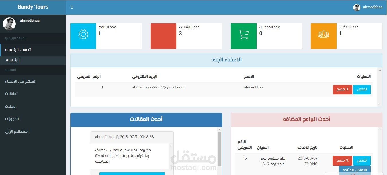 موقع لادارة الرحلات ولكتابة المقالات السياحيه لشركة باندى للرحلات..