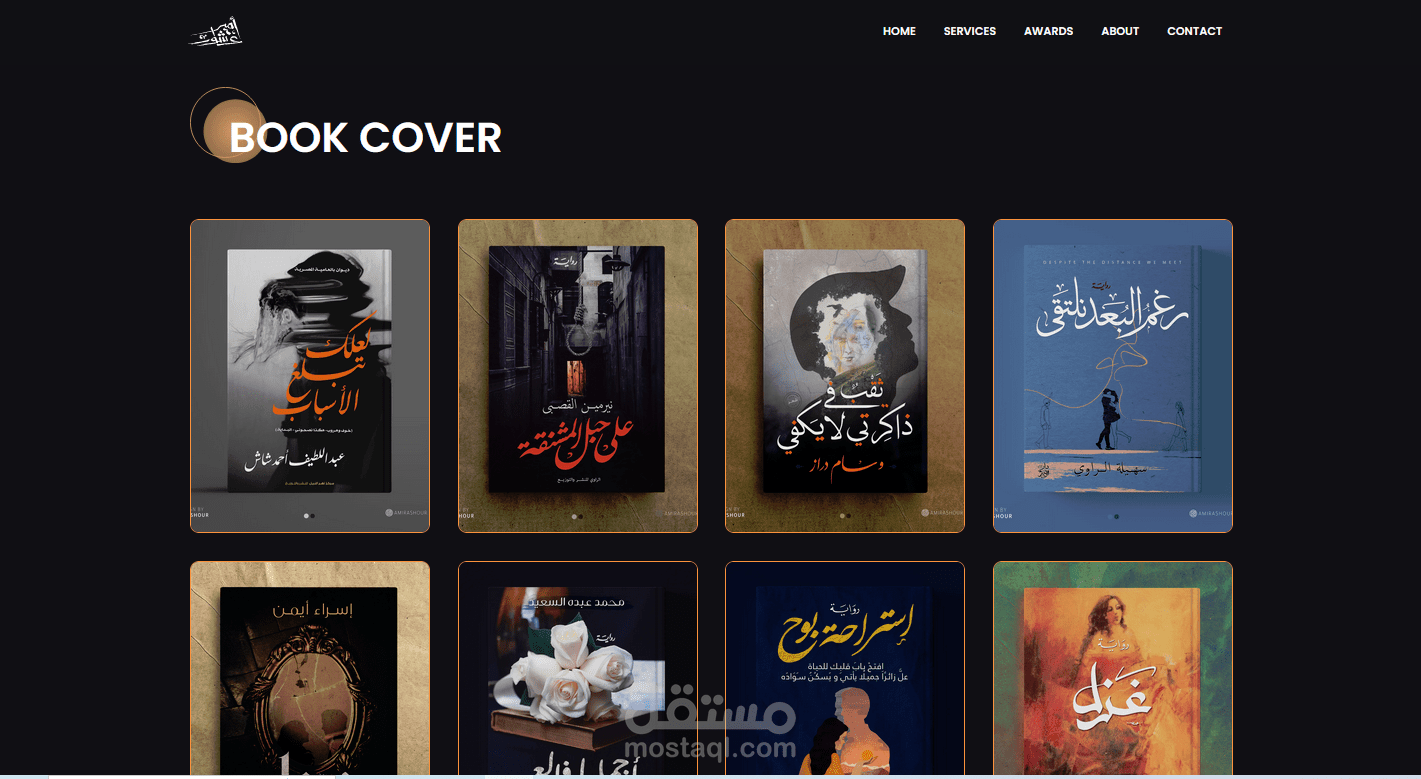 Home: الصفحة الرئيسية التي تعرض مقدمة عني وعن أعمالي، بالإضافة إلى الروابط السريعة لأهم الأقسام في الموقع.