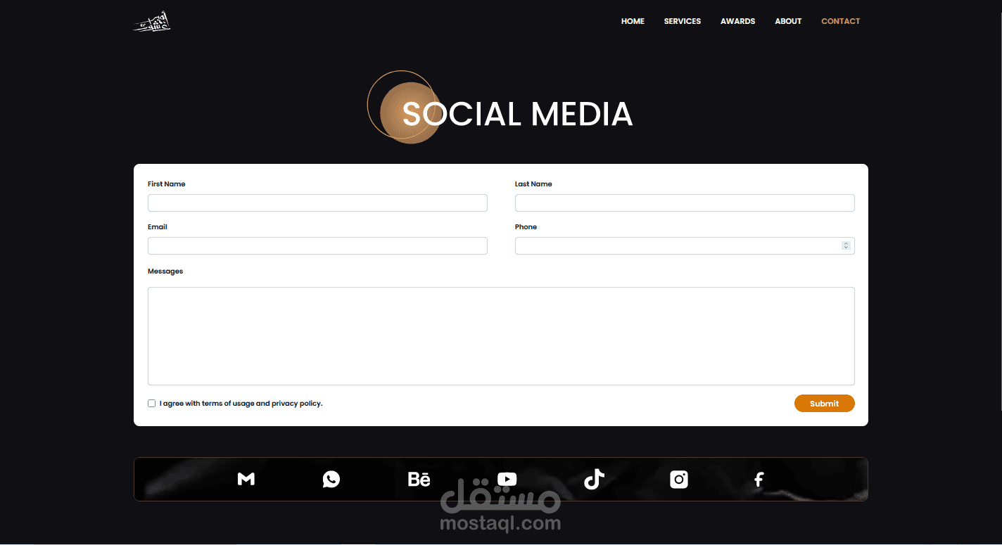 Contact: صفحة تحتوي على نموذج للتواصل مع إمكانية إرسال الرسائل مباشرة من الموقع.