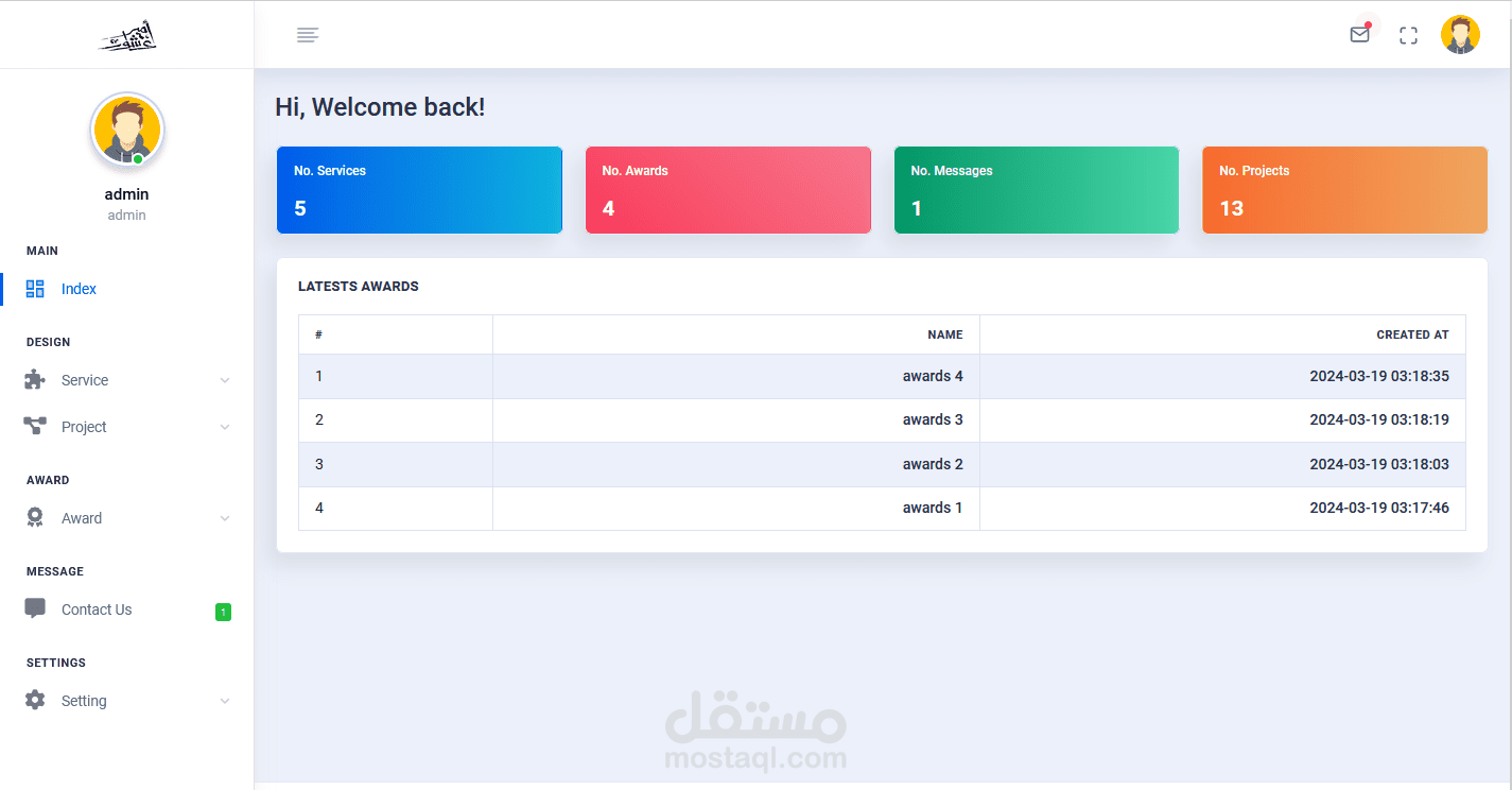 Dashboard: لوحة تحكم مخصصة لإدارة محتوى الموقع وتحديث المعلومات بشكل ديناميكي.