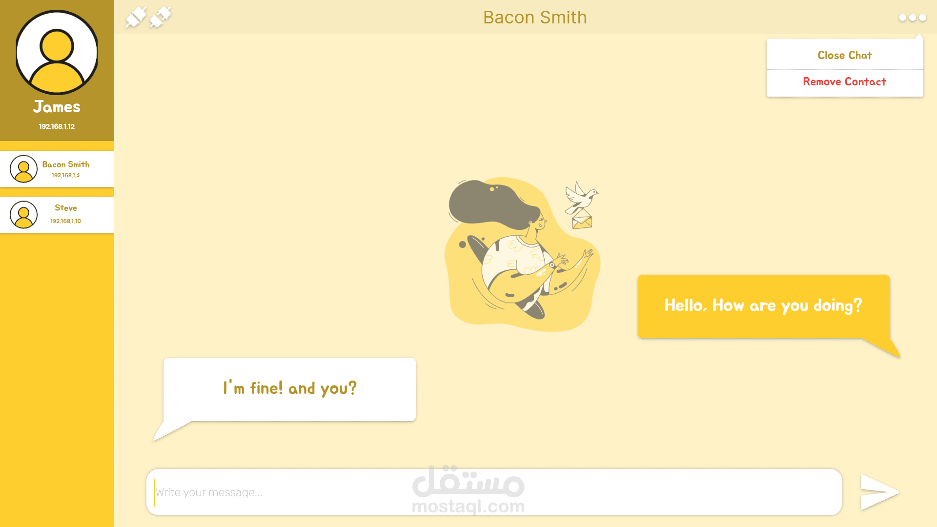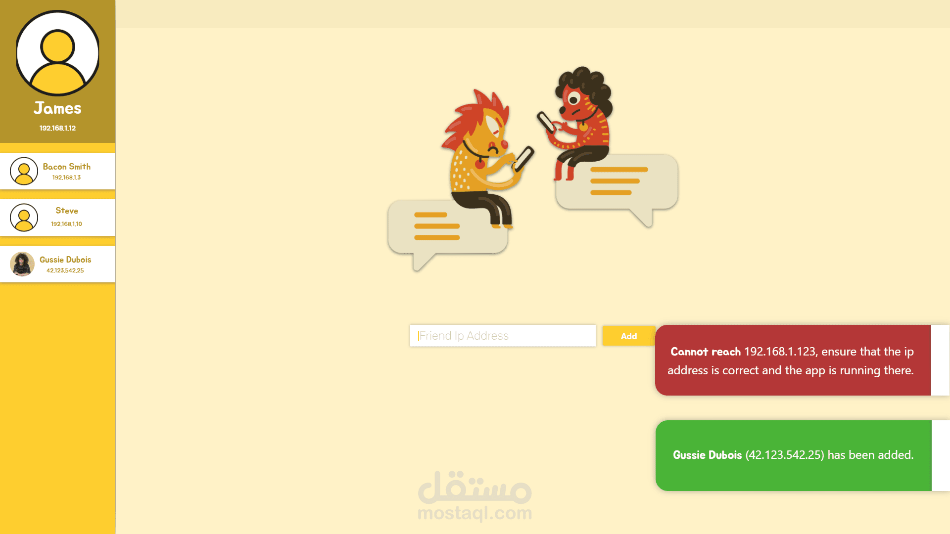 ييلوو لا يحتاج لوجود خادم لإجراء المحادثات، بل يتم بعث واستقبال الرسائل بين المستخدمين مباشرة باستخدام ال ip address.