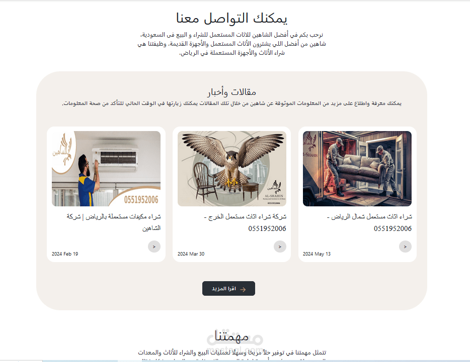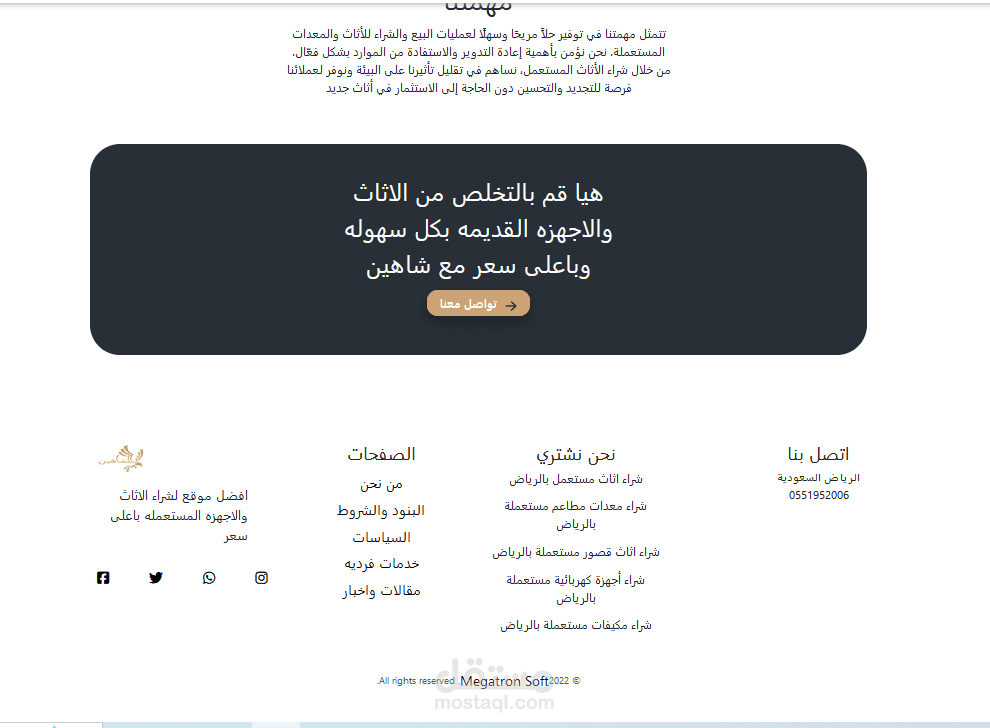 قمت بتطوير موقع ويب متكامل لشركة أثاث في السعودية يحتوي على صفحات متعددة لعرض المنتجات والخدمات والمعلومات عن الشركة. الموقع يستخدم تقنيات حديثة لضمان أداء عالي وتجربة مستخدم ممتازة.