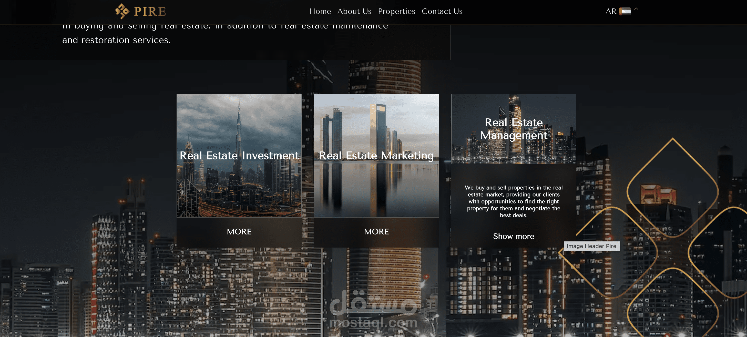 موقع تعريفي لشركات عقارات يقدم خدمات الشراء والبيع والاستثمار