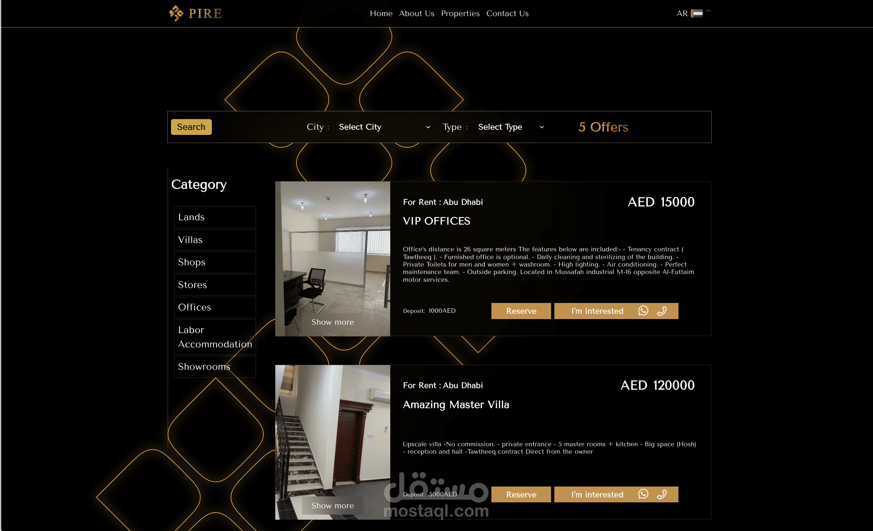ويركز علي محتوى الخدمات التي يقدمها وايضا يمكنك الايجار والبيع والاستثمار من داخل الموقع عن طريق دفع حجز الخدمه التي تريدها