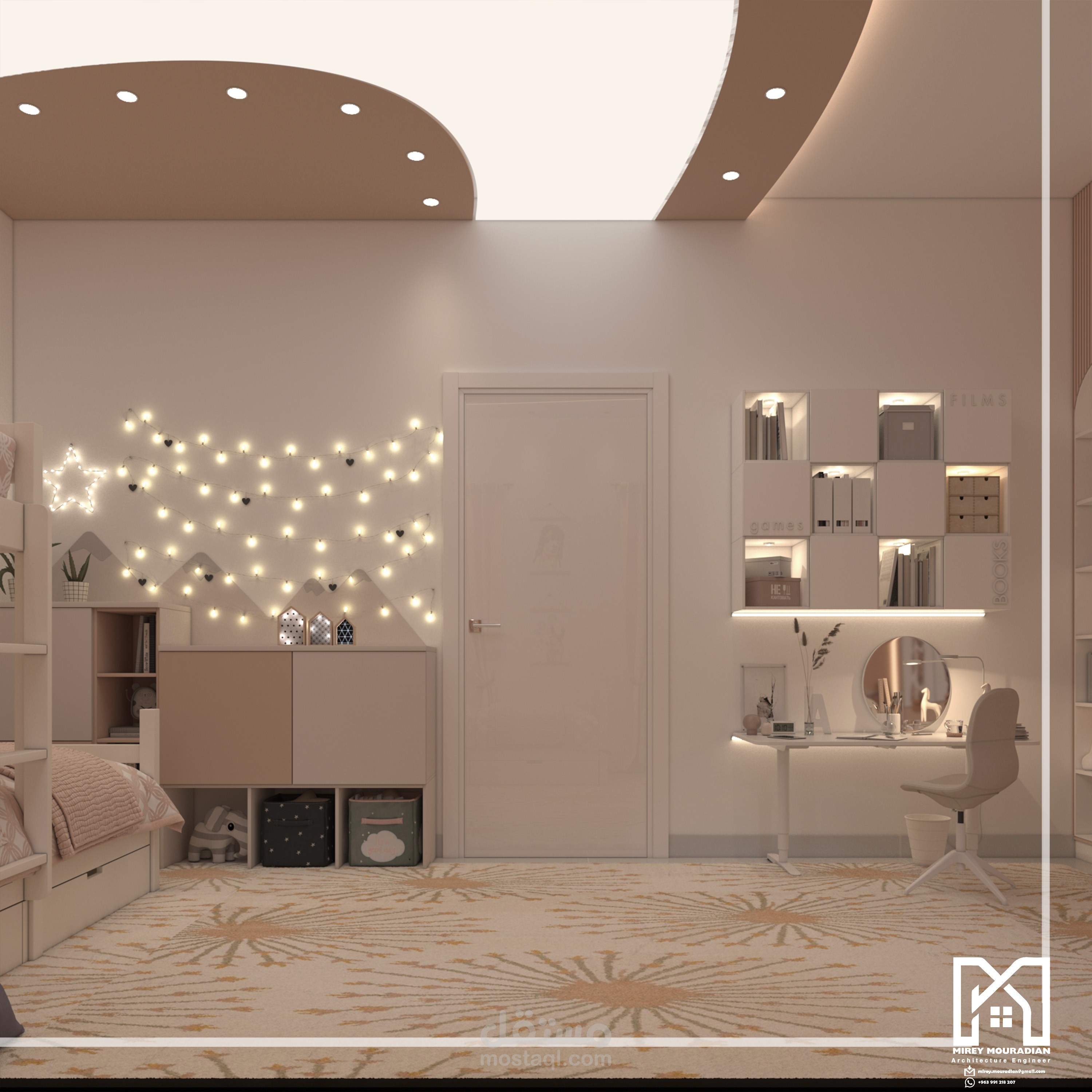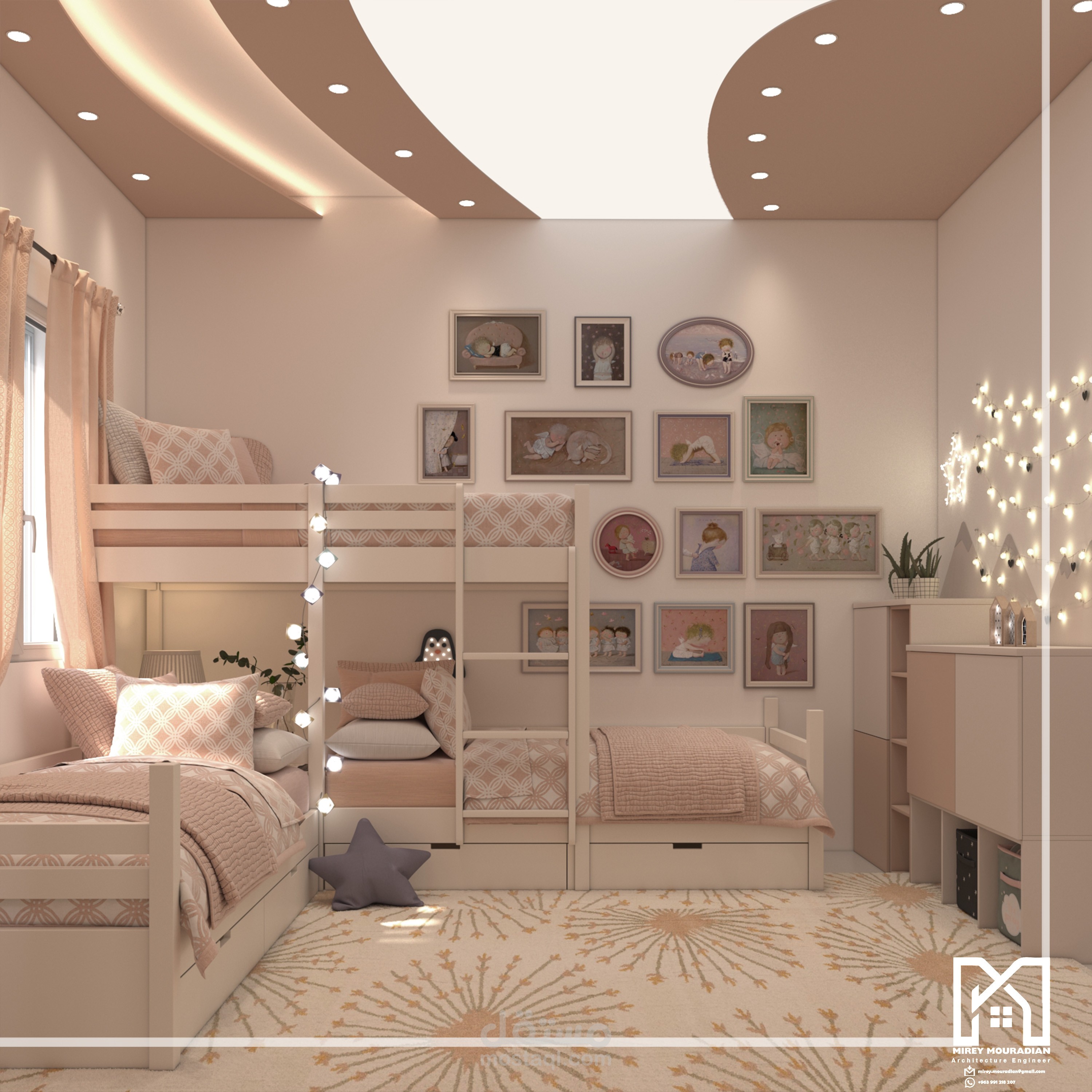 تم تصميم غرفة نوم ل٣ بنات بنمط المودرن