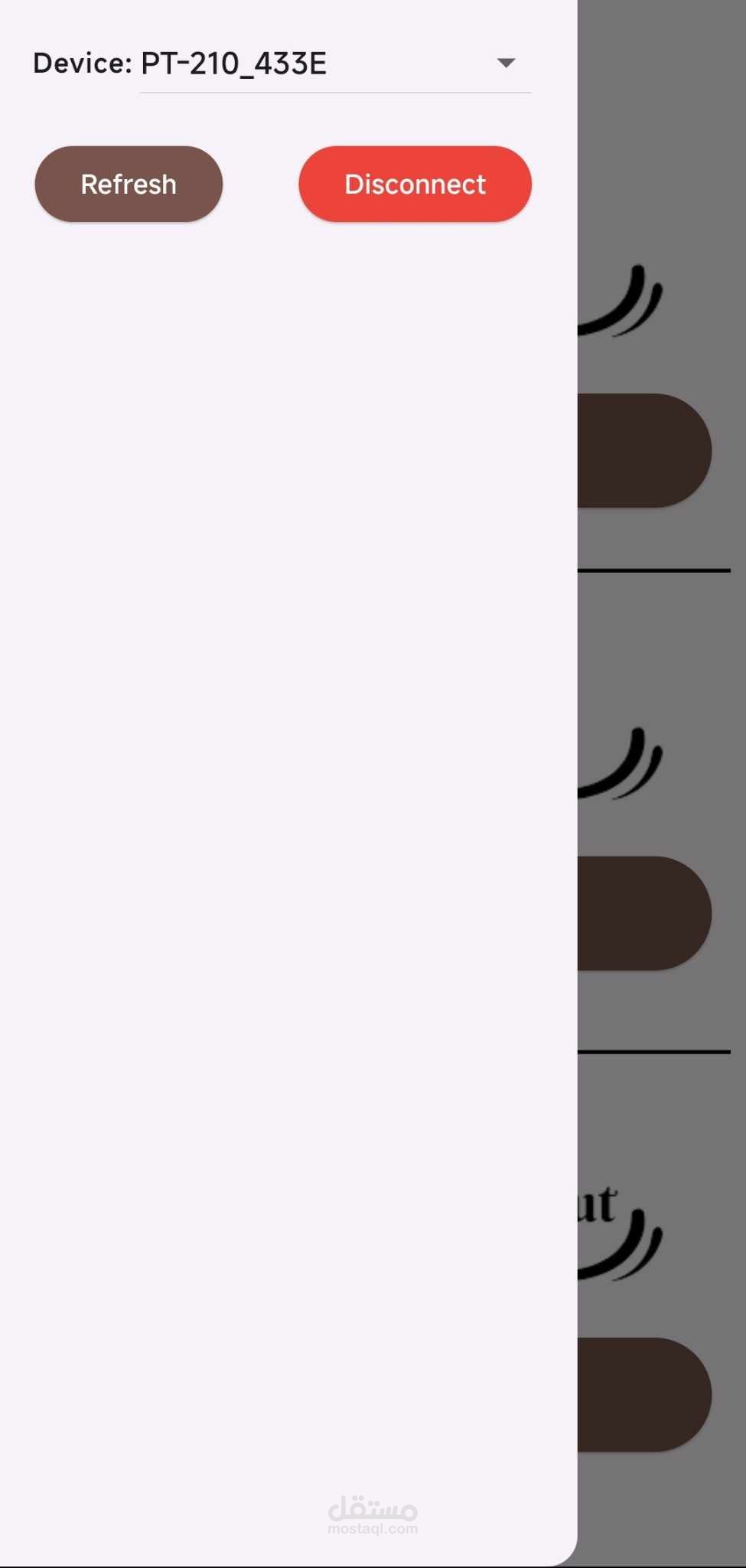 عند الضغط على زر "تأكيد"، يقوم التطبيق بإرسال إشارة عبر البلوتوث للطابعة الحرارية.