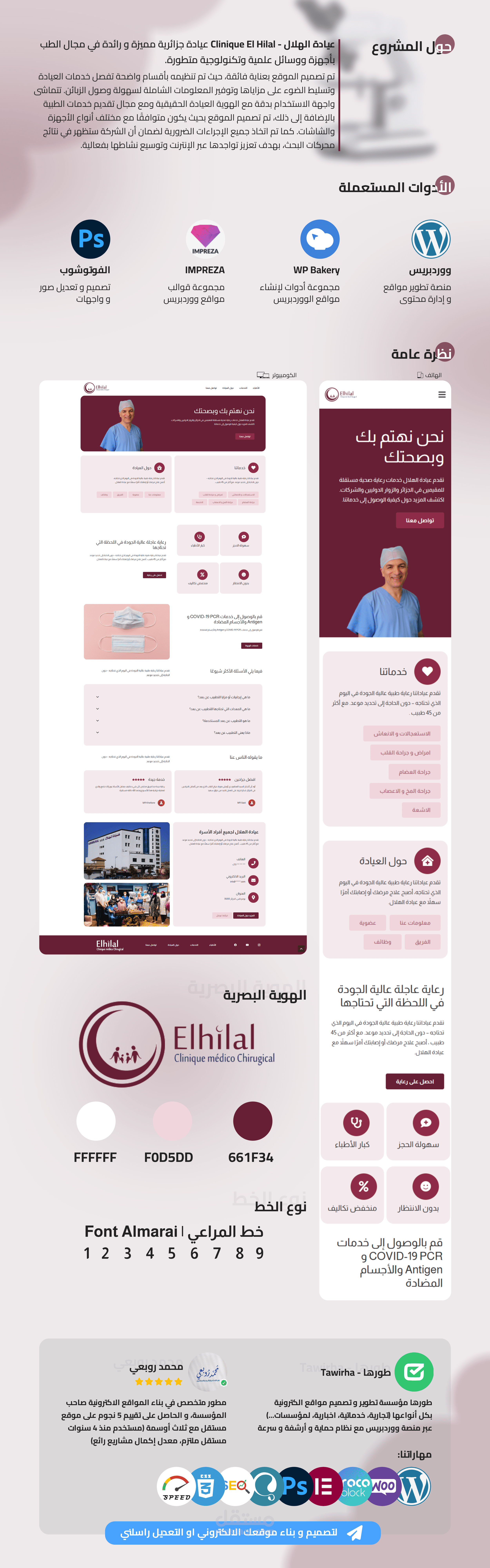 الموقع يحتوي 5 صفحات عبارة عن خدمات العيادة و الاطباء و نموذج الاتصال بالاضافة الى نبذة عن العيادة