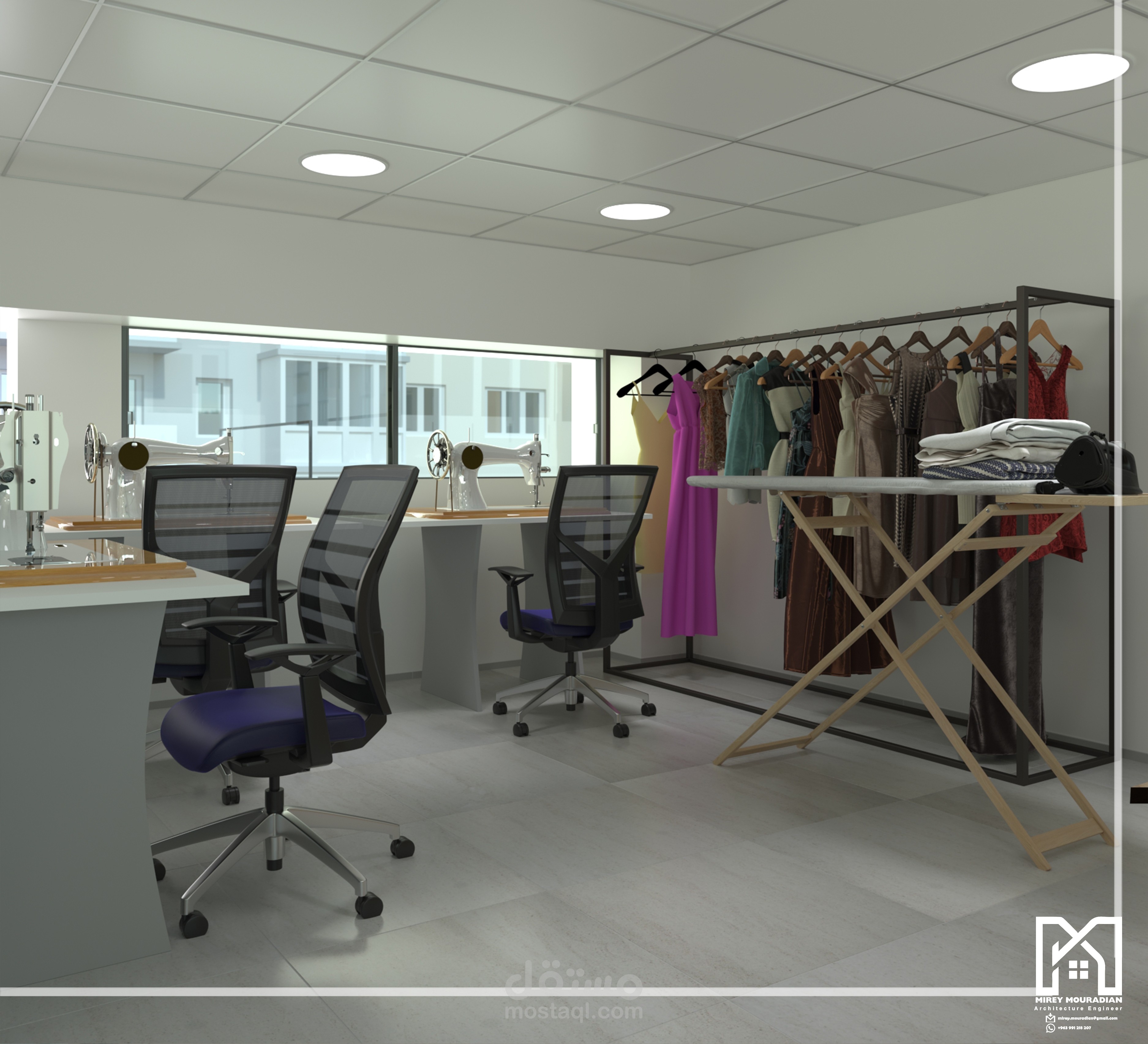 تم تصميم و تنفيذ مساحة عمل لتدريب النساء في مجالات التكنولاجيا و تصميم الازياء و تم تنفيذ العمل في مدينة حلب سوريا