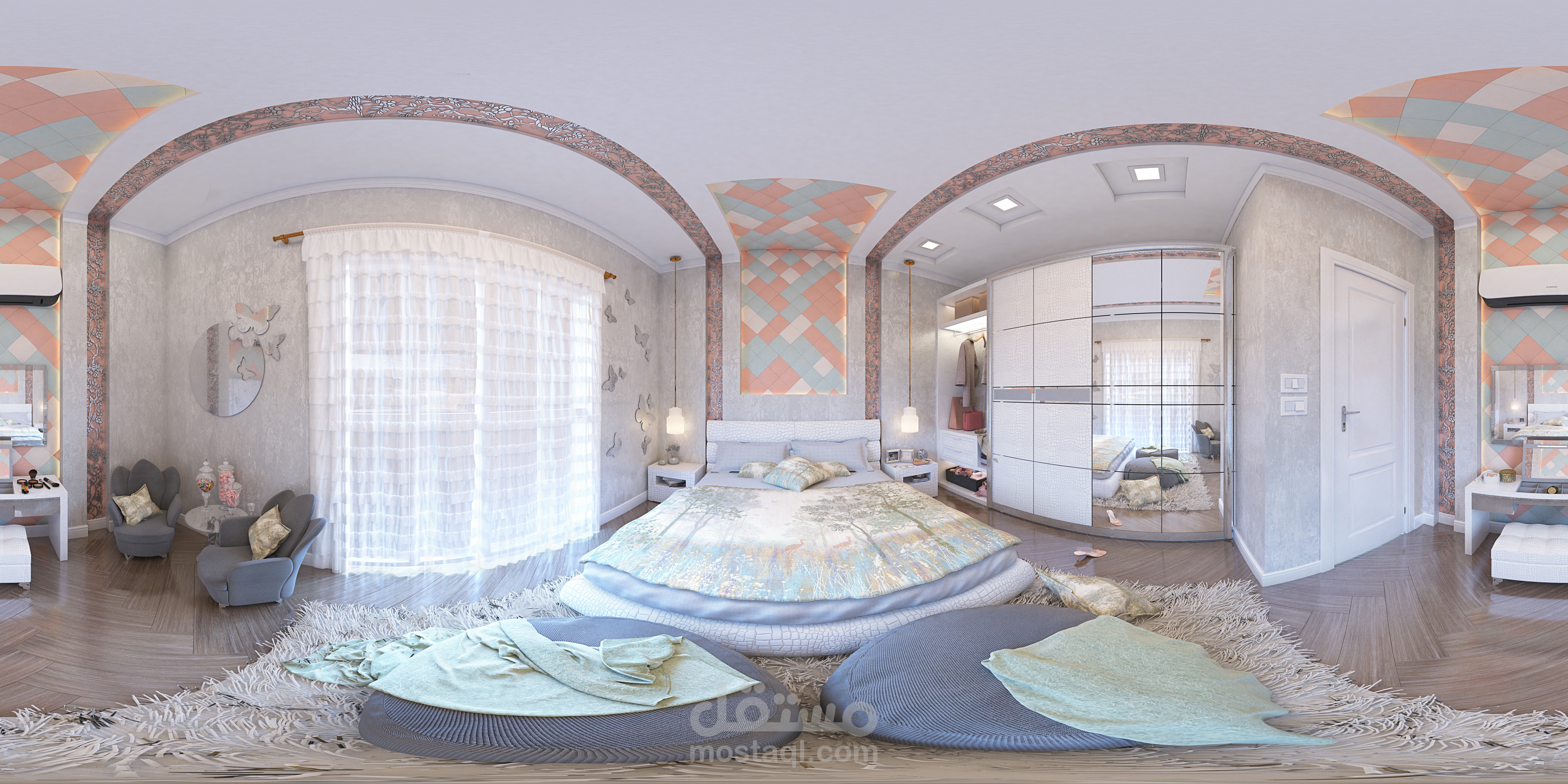 تصميم مميز لغرف بنت بالوان الباستيل