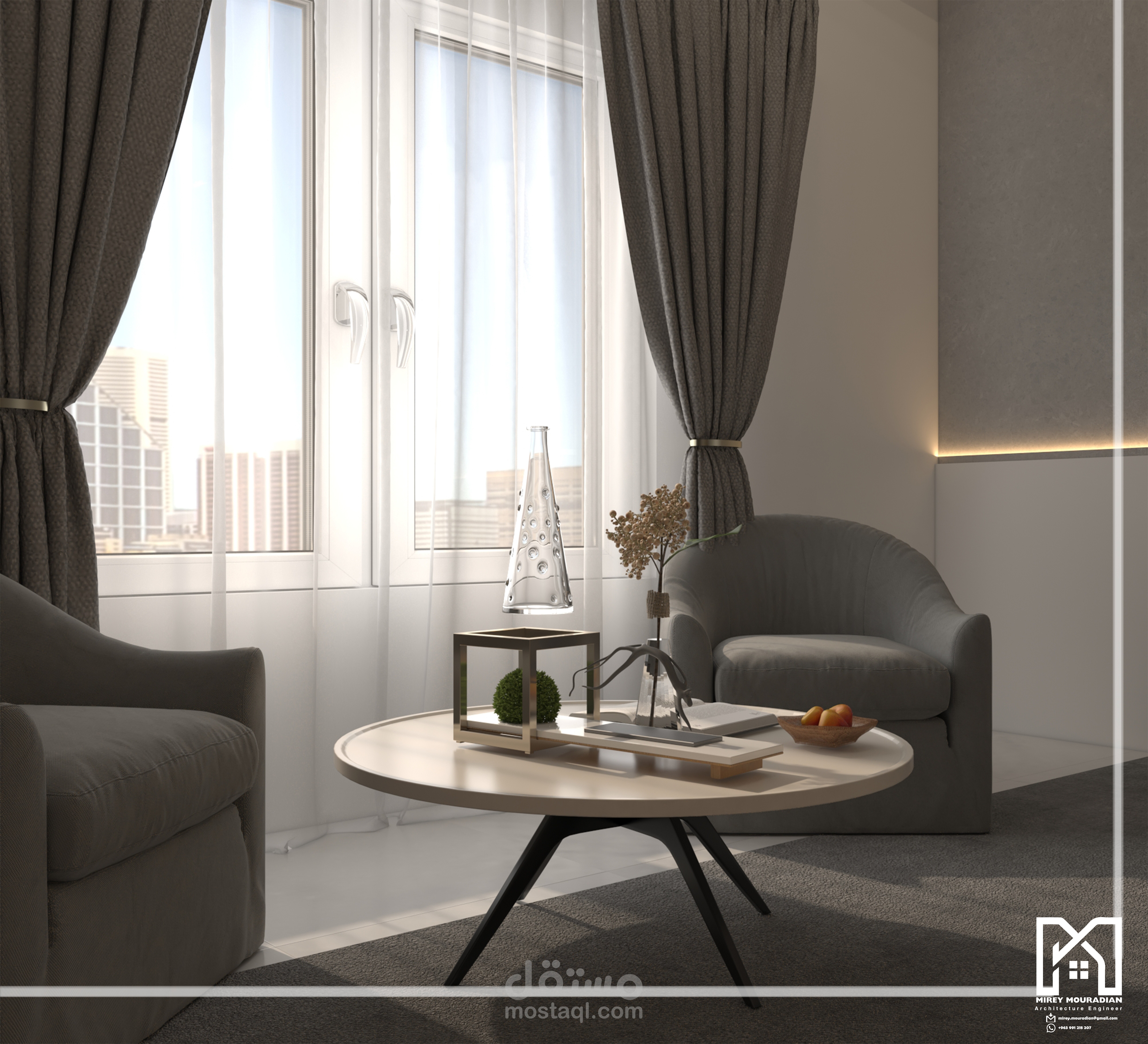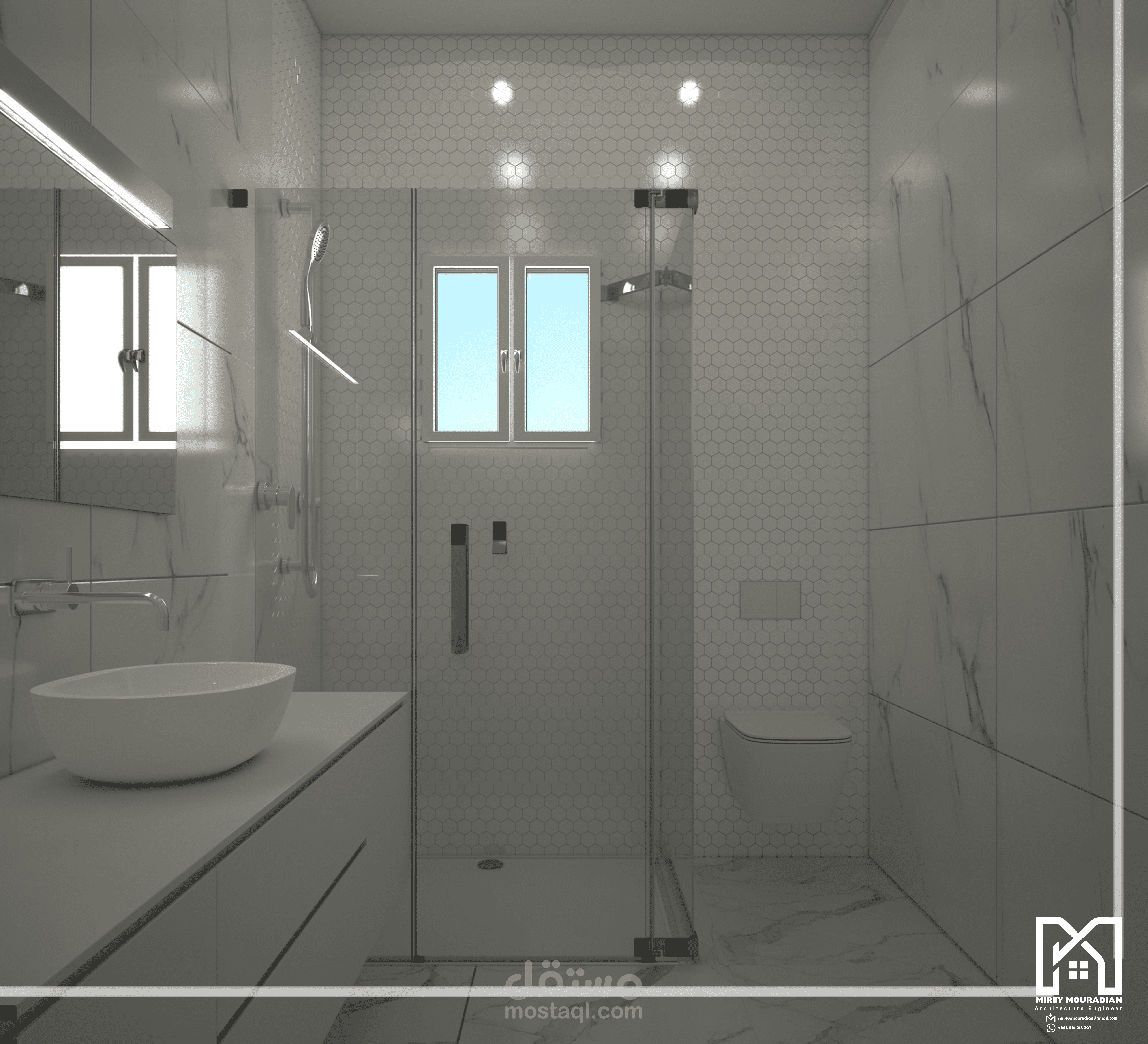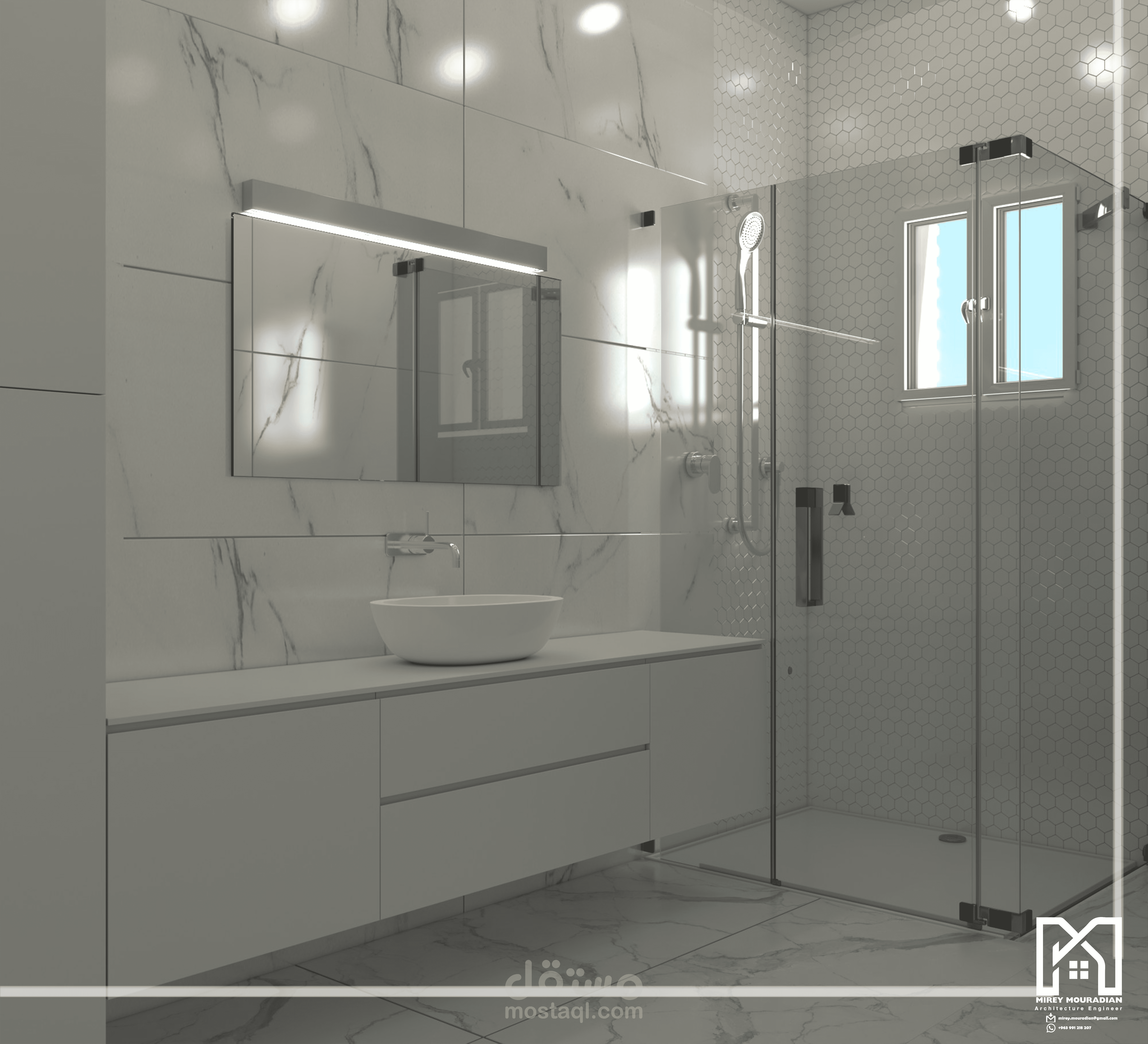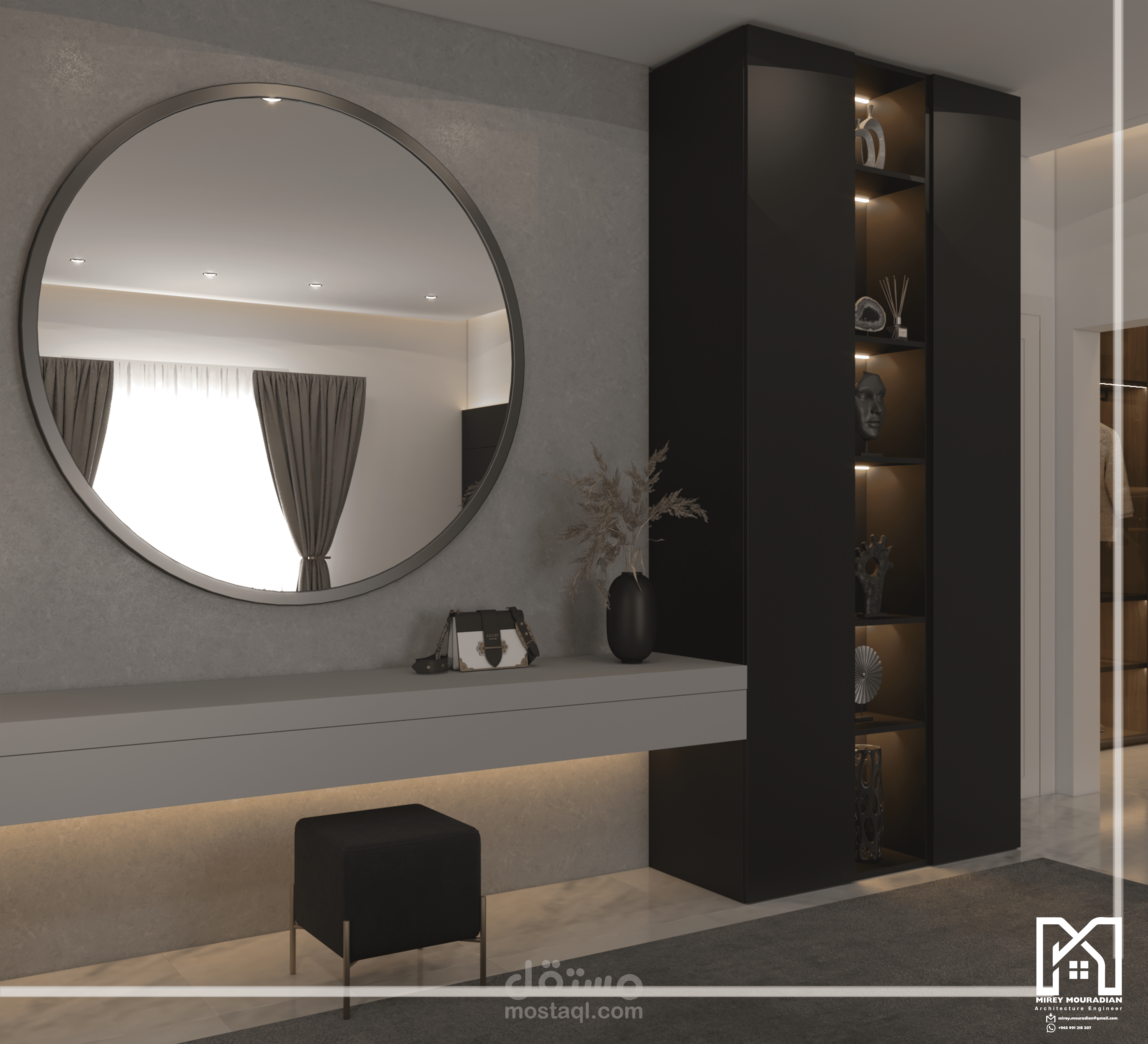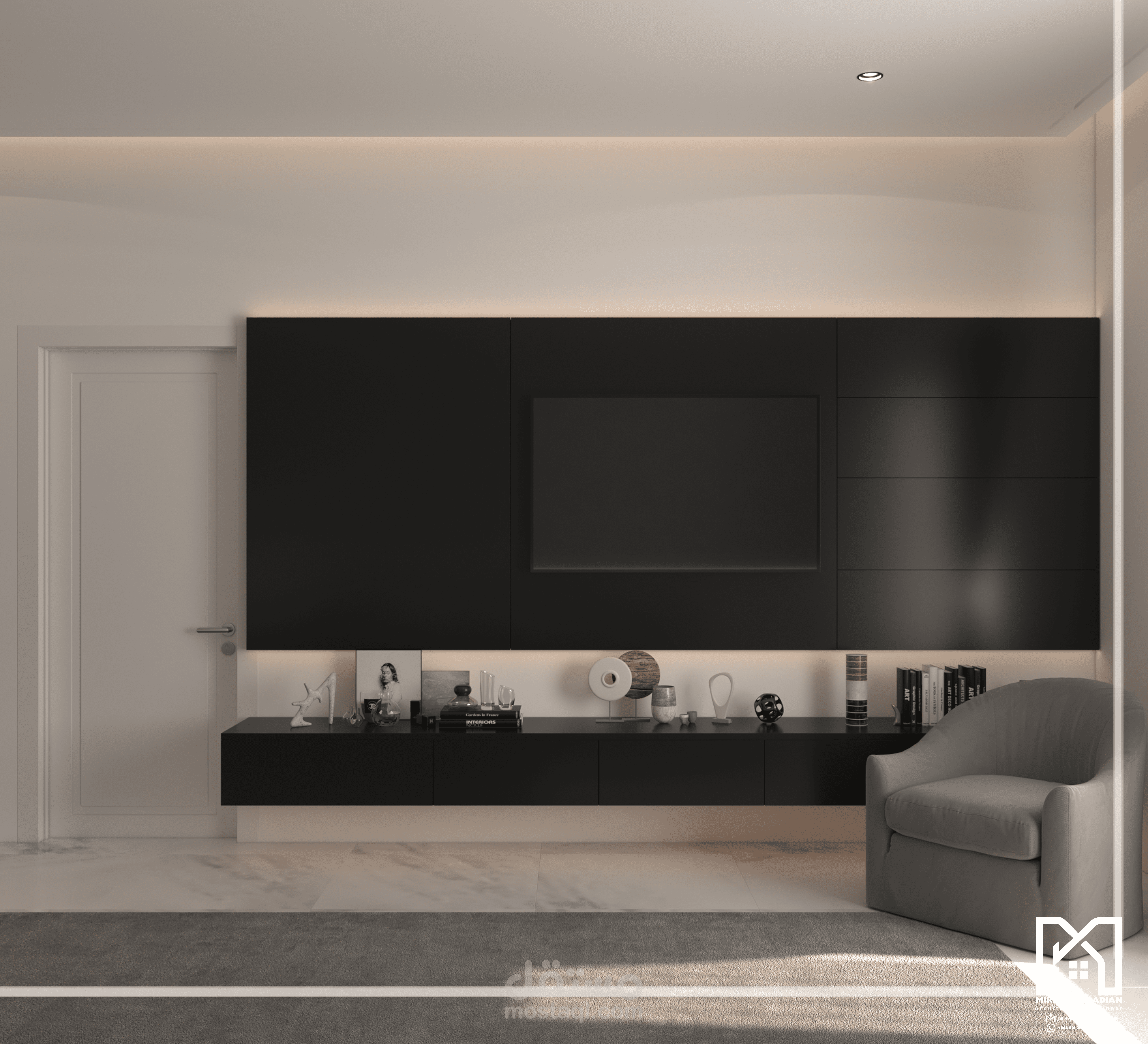 jتم تصميم غرفة نوم ابويين بنمط مودرن بسيط مع غرفة ملابس و حمام في فيللا في السعودية