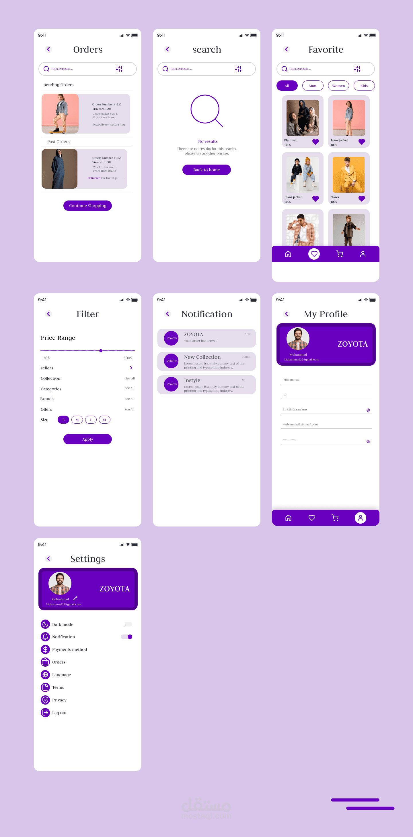 هو منصة شاملة لبيع الملابس الرجالية والنسائية والأطفالية عبر الإنترنت. يهدف التطبيق إلى تقديم تجربة تسوق متميزة وسلسة للمستخدمين من خلال تصميم واجهة مستخدم جذابة وتفاعلية، بالإضافة إلى استخدام الأنيميشن لجعل التجربة أكثر حيوية. يتميز التطبيق بقدرته على تلبية احتياجات مختلف الفئات العمرية، وتوفير اقتراحات الأزياء، وتحديد المقاسات بدقة، مما يسهل عملية اختيار الملابس وشرائها.