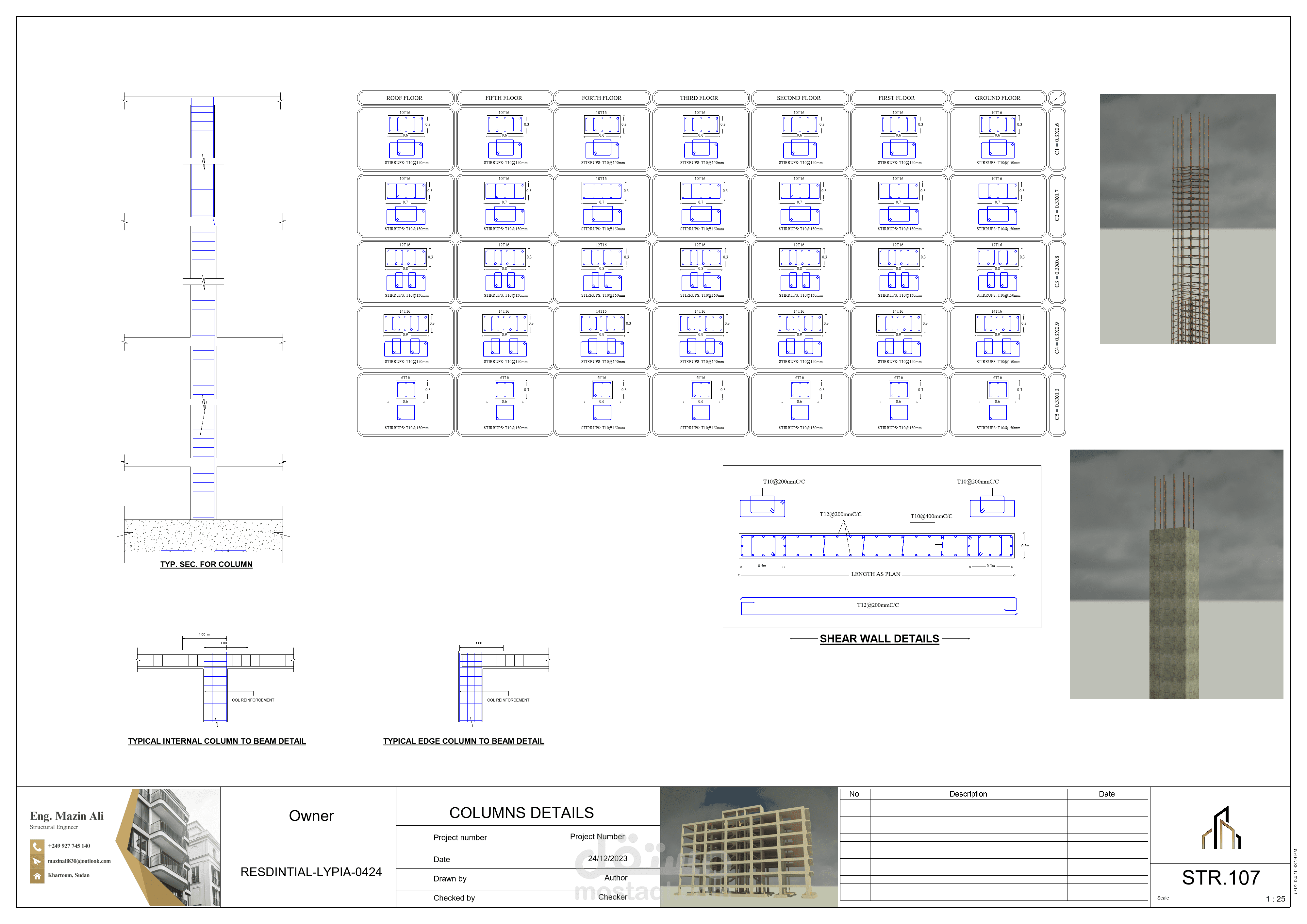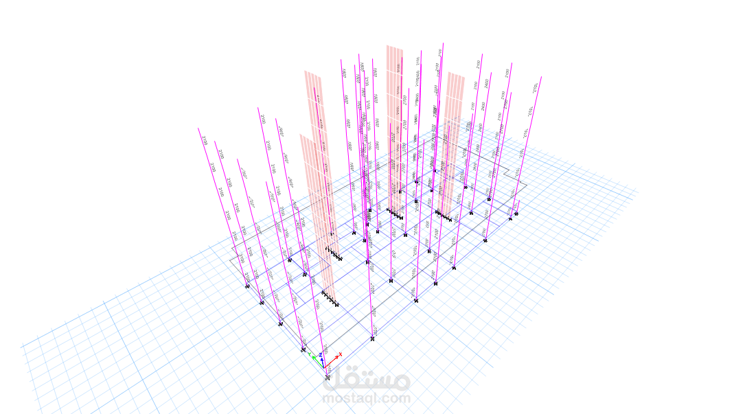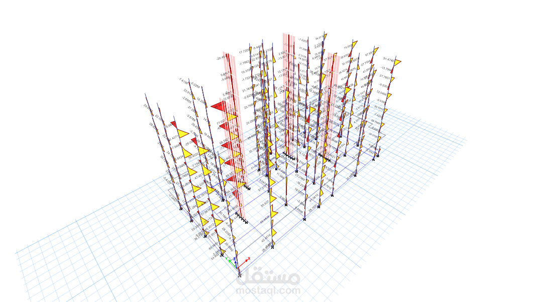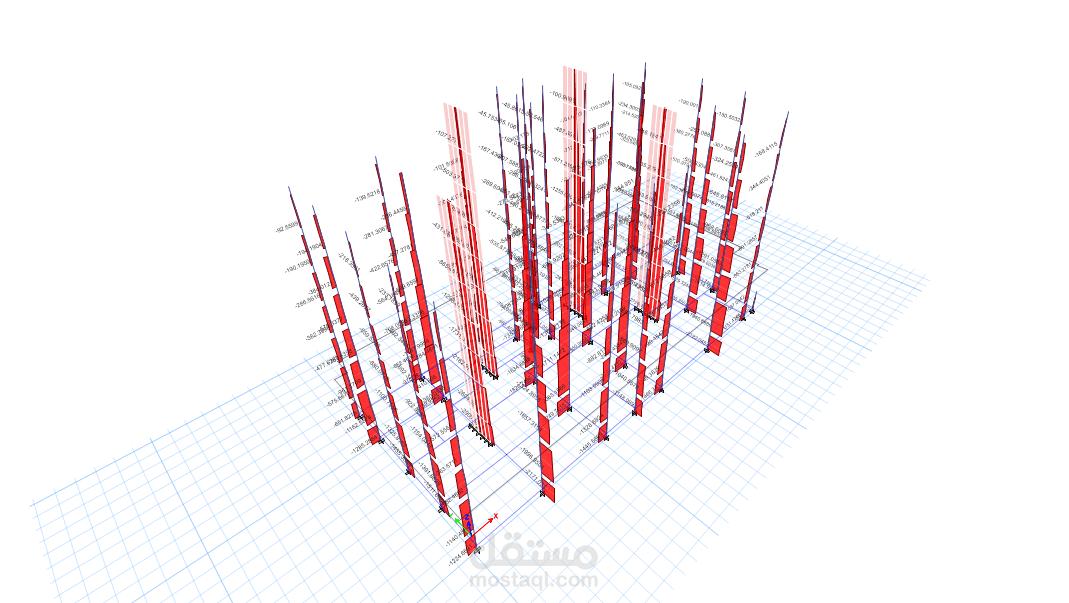 نمذجة المبنى على برنامج الريڤيت مع إخراج جداول حصر كميات الخرسانة لكل عنصر ولكل طابق.