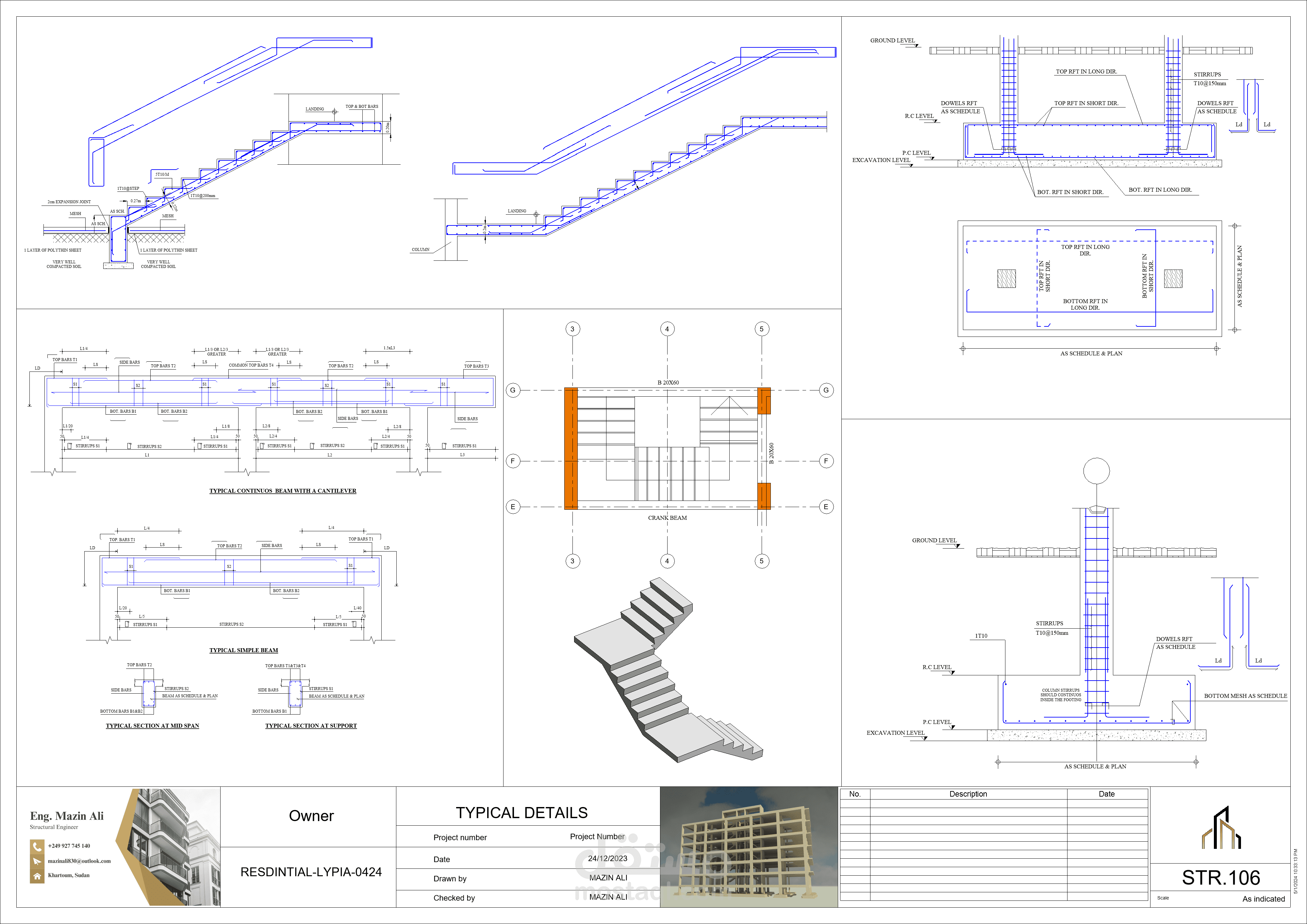 تصميم جميع عناصر الهيكل مثل (الأساسات، الأعمدة، السلالم...إلخ).
