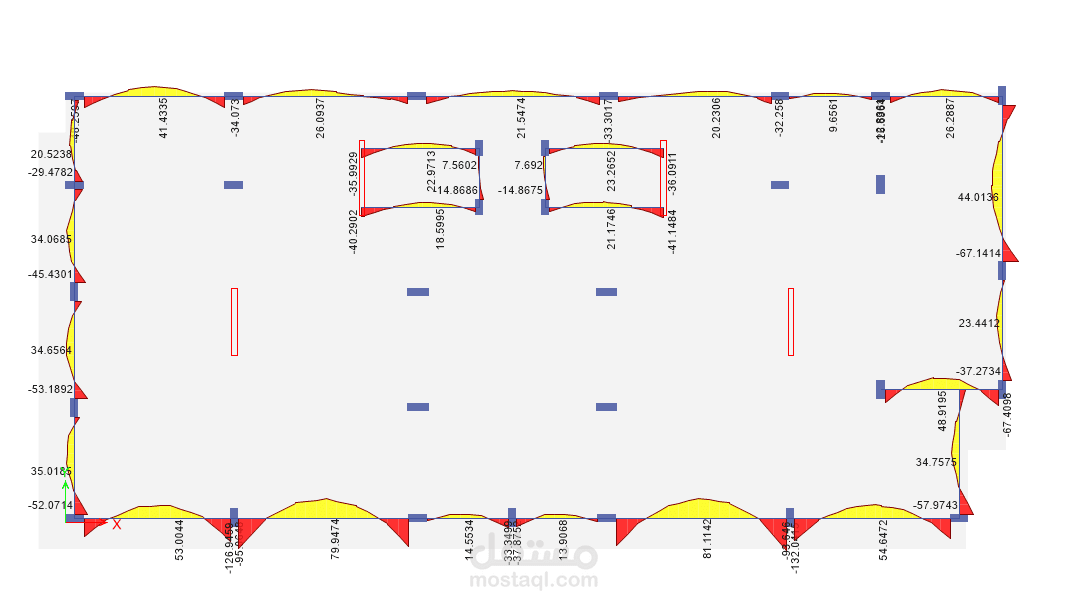 النظام الإنشائي للسقف يتكون من بلاطات مسطحة مع كمرات خارجية.