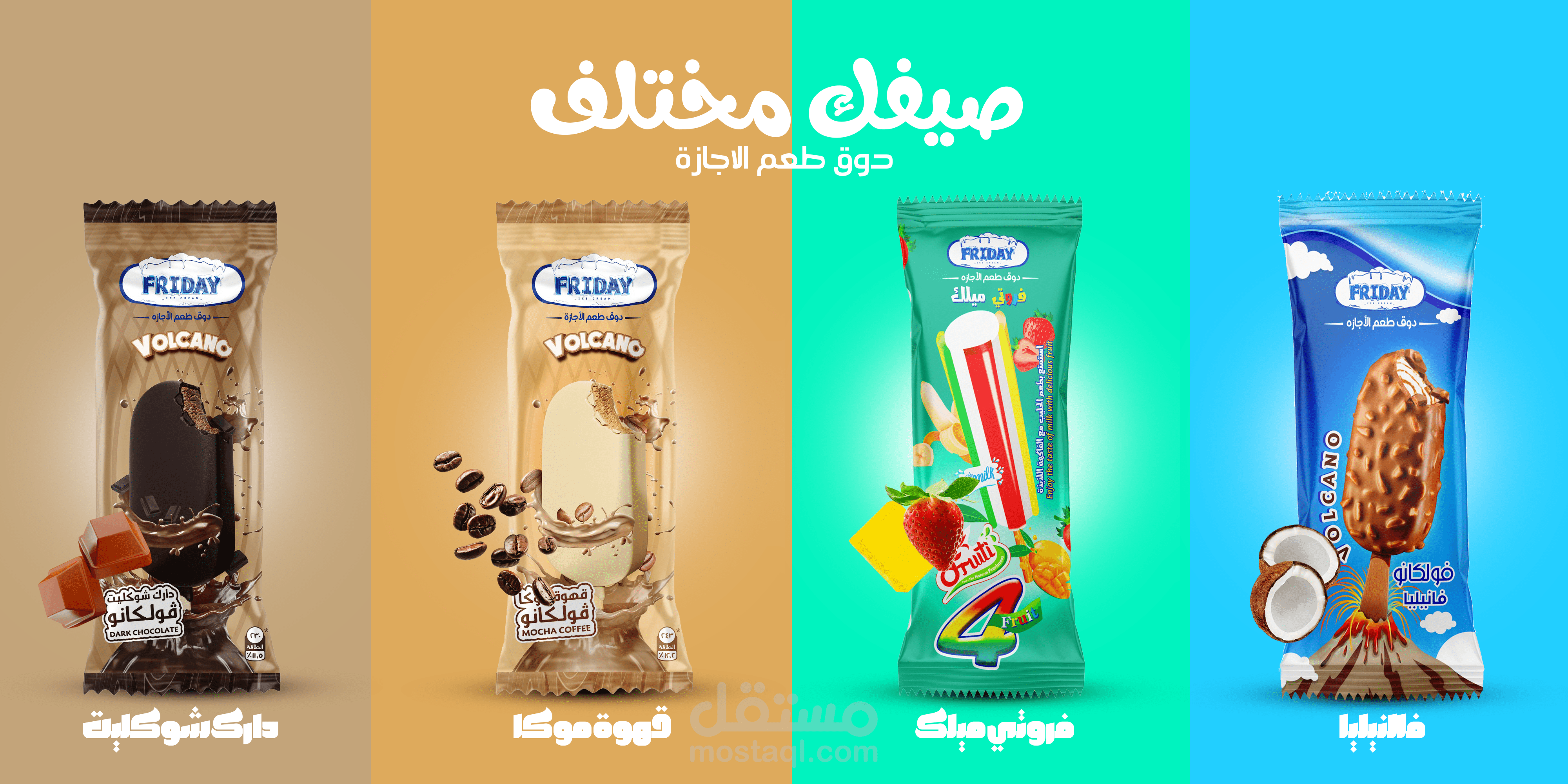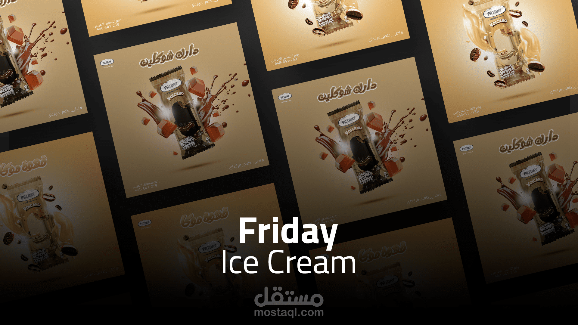 بروجيكت ل شركة Friday غير رسمي و هي شركة تقدم ال ايس كريم مكون اربع بوسترات و واحد كفر تهميداً للاطلاق الصنف الجديد من الايس كريم و كل بوست يصف ما هو طعم الايس كريم و الكفر يوضح ما هي الاطعمة الجديدة مشتملة في تصميم واحد.