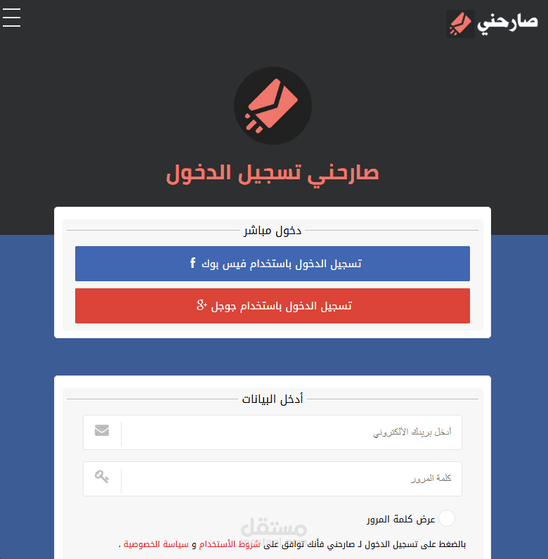 تسجيل دخول آمن: عبر حسابات فيسبوك أو جوجل.