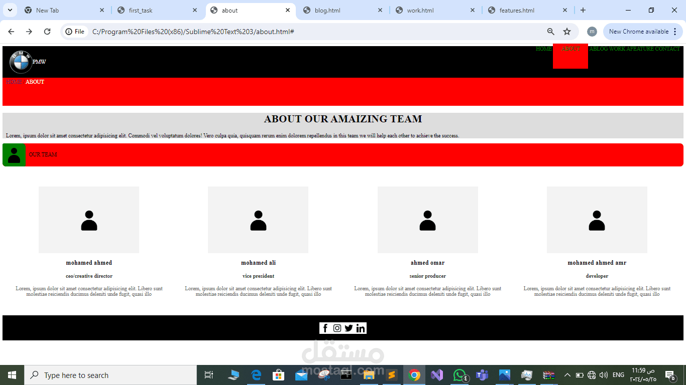 عبارة عن موقع بسيط ب html , css فى بداية تعلمهما يبدأ التصميم بصفحة ال Home التي عبارة عن مجموعة links و التعريف بالموقع وثم صفحه تعرض المنتجات و صفحه تعرض كيفية التواصل معنا