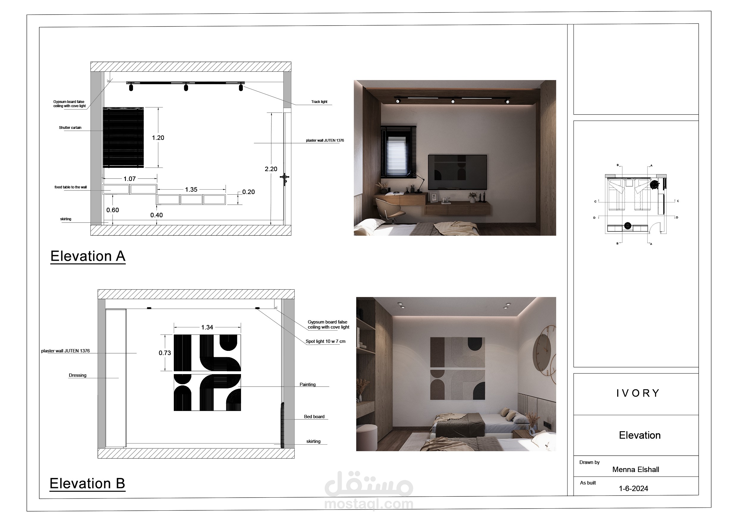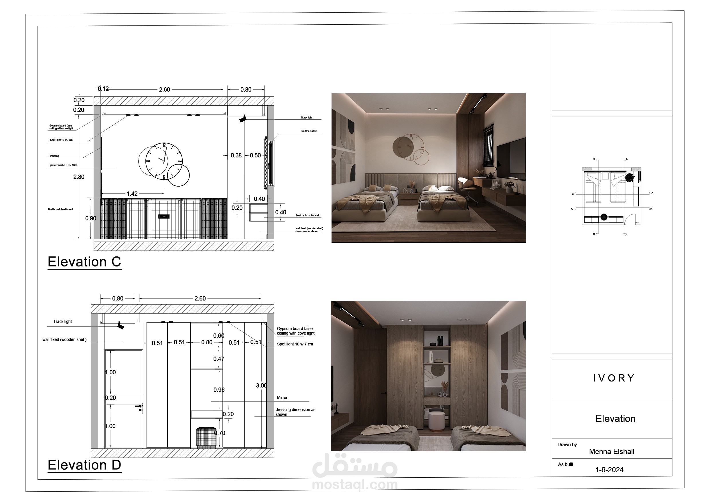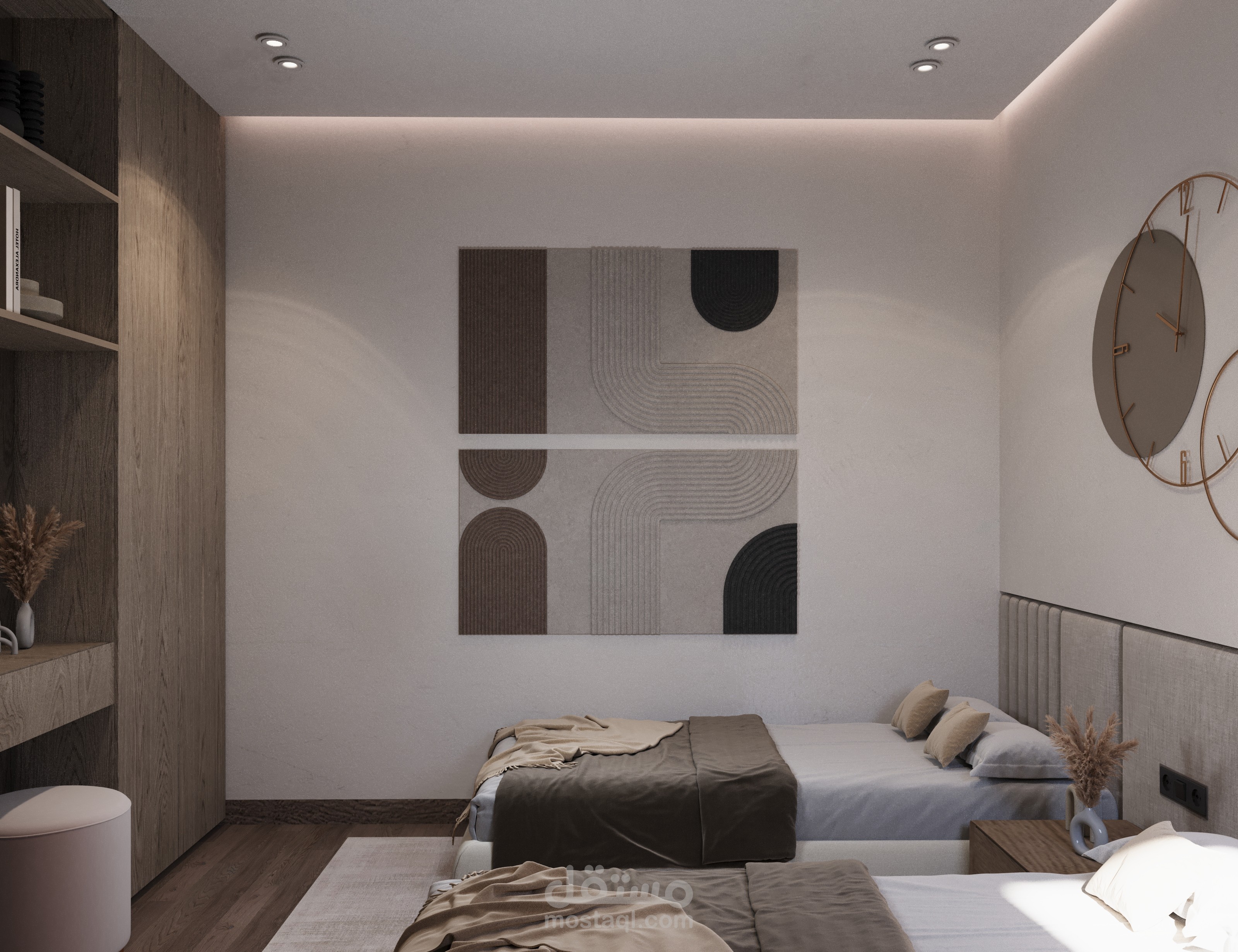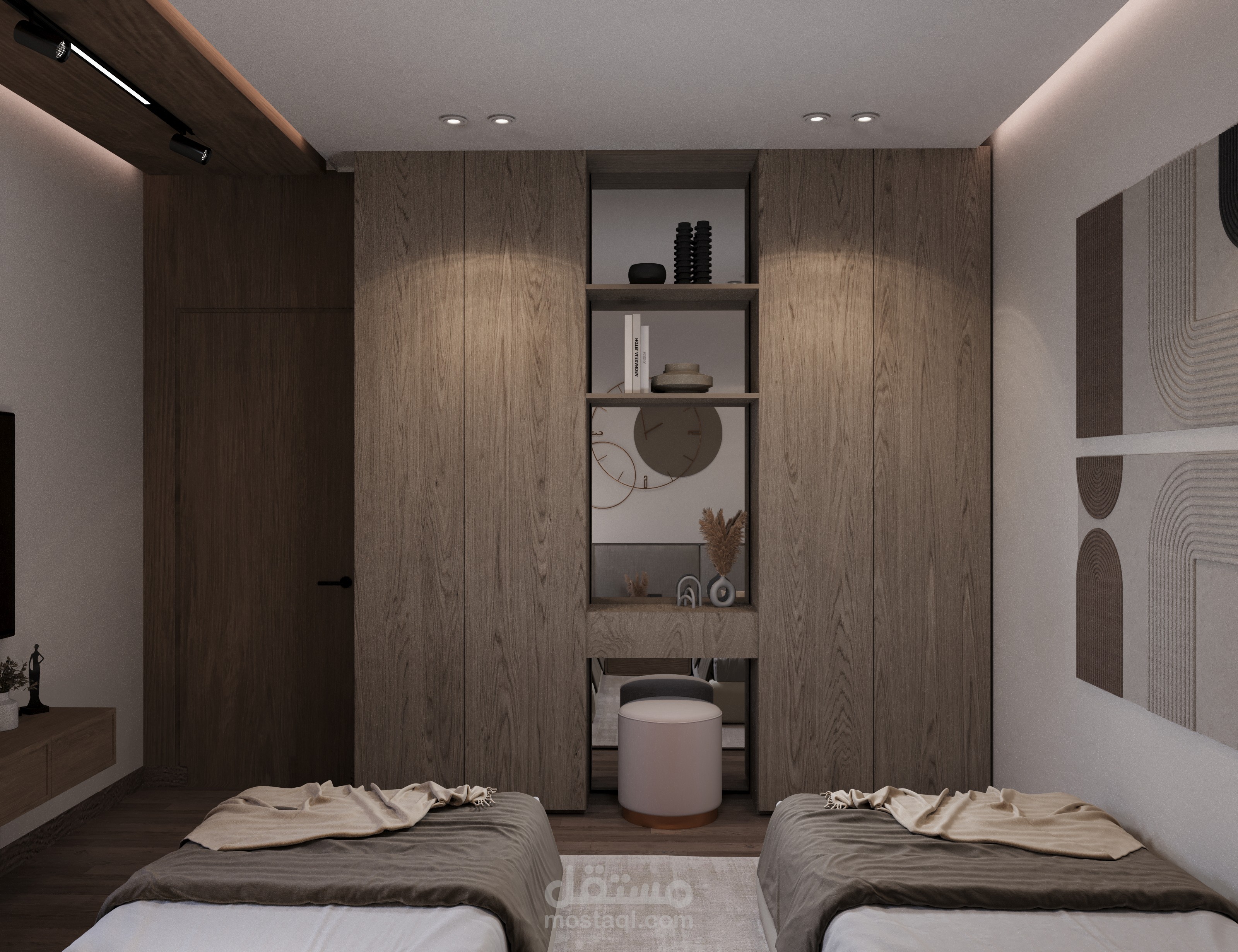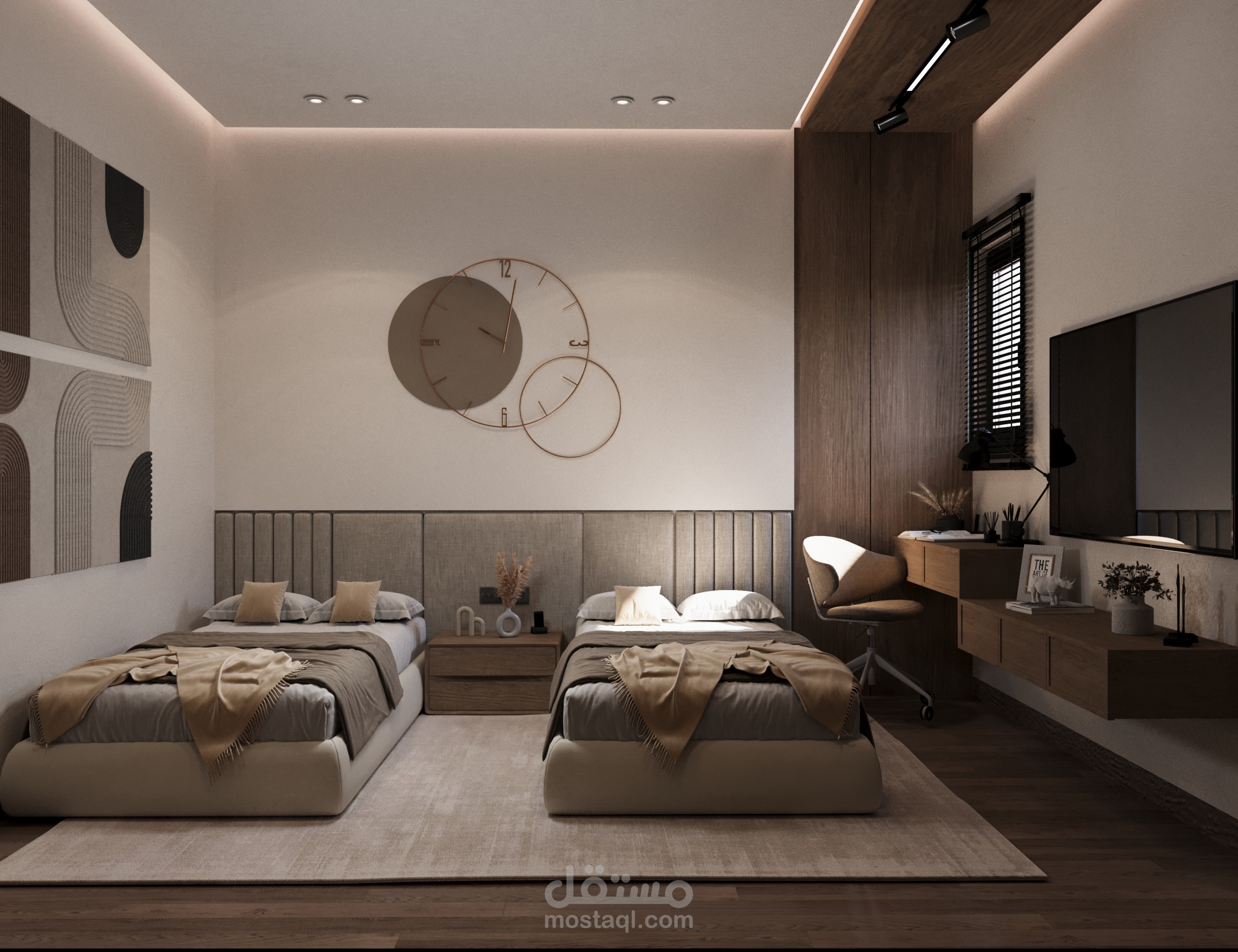 تصميم غرفة مزدوجة مودرن مع وجود الرسومات التنفيذية