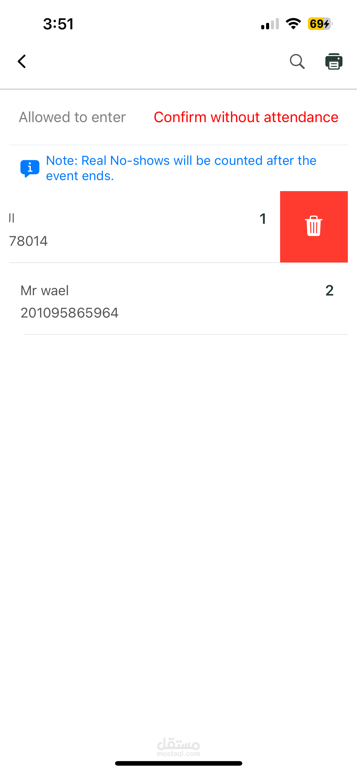 يتم تسجيل الحضور عن طريـــق الباركـود الشخصـي لكل مدعو .