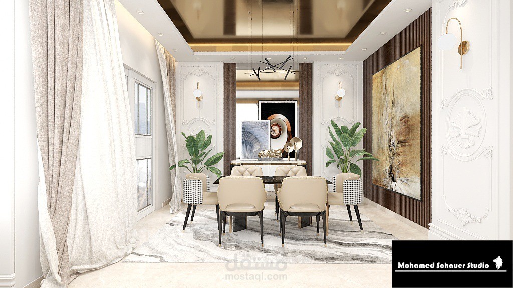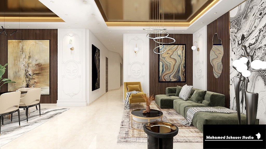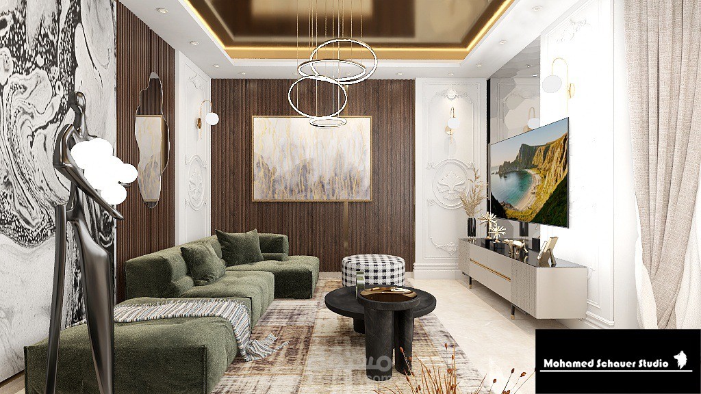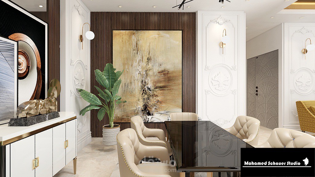 شقة بالقاهرة الجديدة بمساحة 120م2 بتصميم معاصر (Contemporary ) و استخدام بعض اللمسات الكلاسيكة لإضفاء روح الفخامة في الفراغ