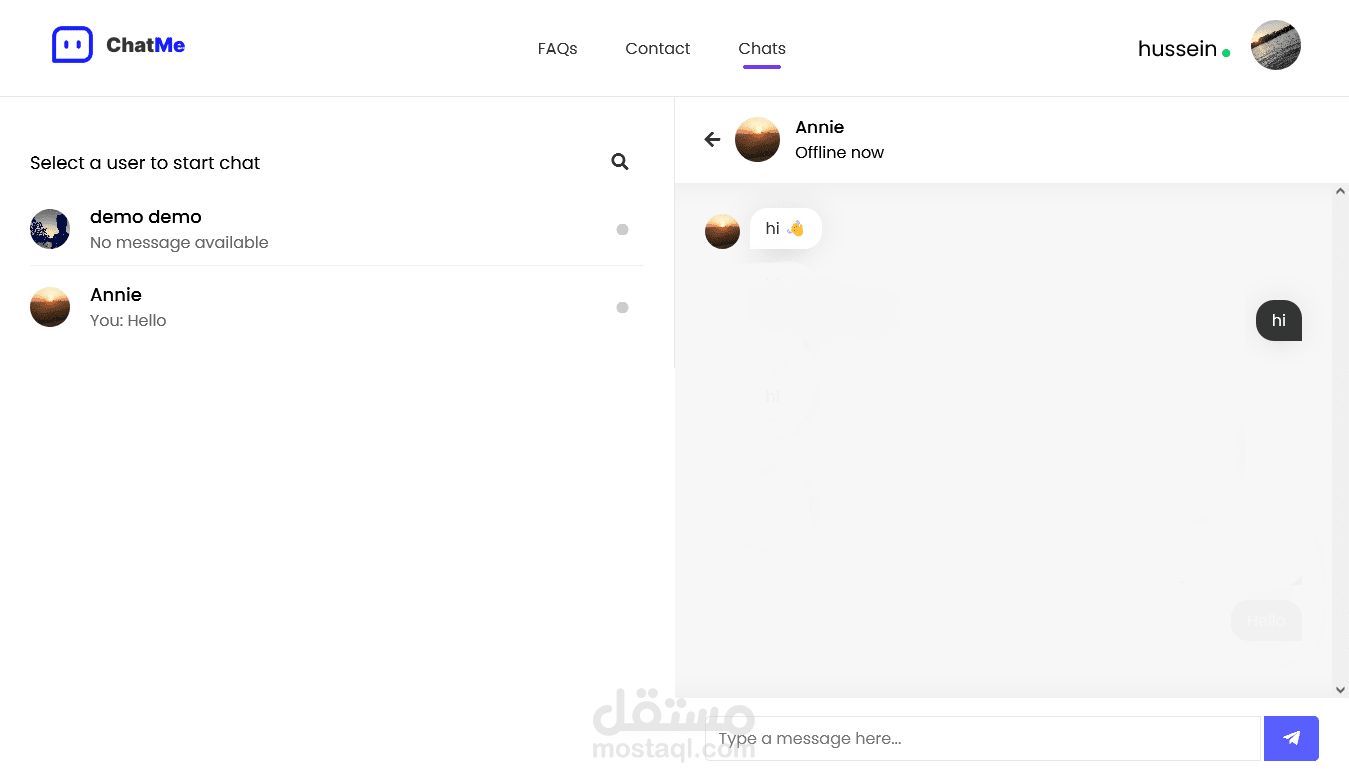 تطبيق دردشة يسمح للمستخدمين بالتواصل مع بعضهم البعض عبر الرسائل النصية. يمكن استخدام تطبيق الدردشة للتحدث مع الأصدقاء والعائلة أو للتواصل مع زملاء العمل أو للتعرف على أشخاص جدد تم عمله بواسطة PHP ,HTML ,CSS3, Javascript, MySQL.