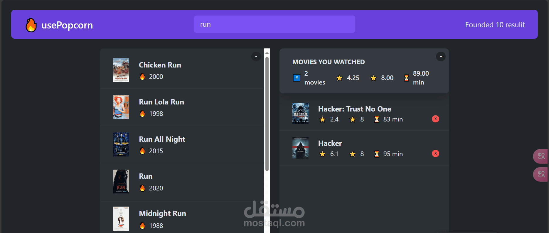 API Integration: Employed React's powerful state management and fetching capabilities to seamlessly fetch movie data from an external API (e.g., TMDB, OMDb). Implemented error handling for robust data retrieval.