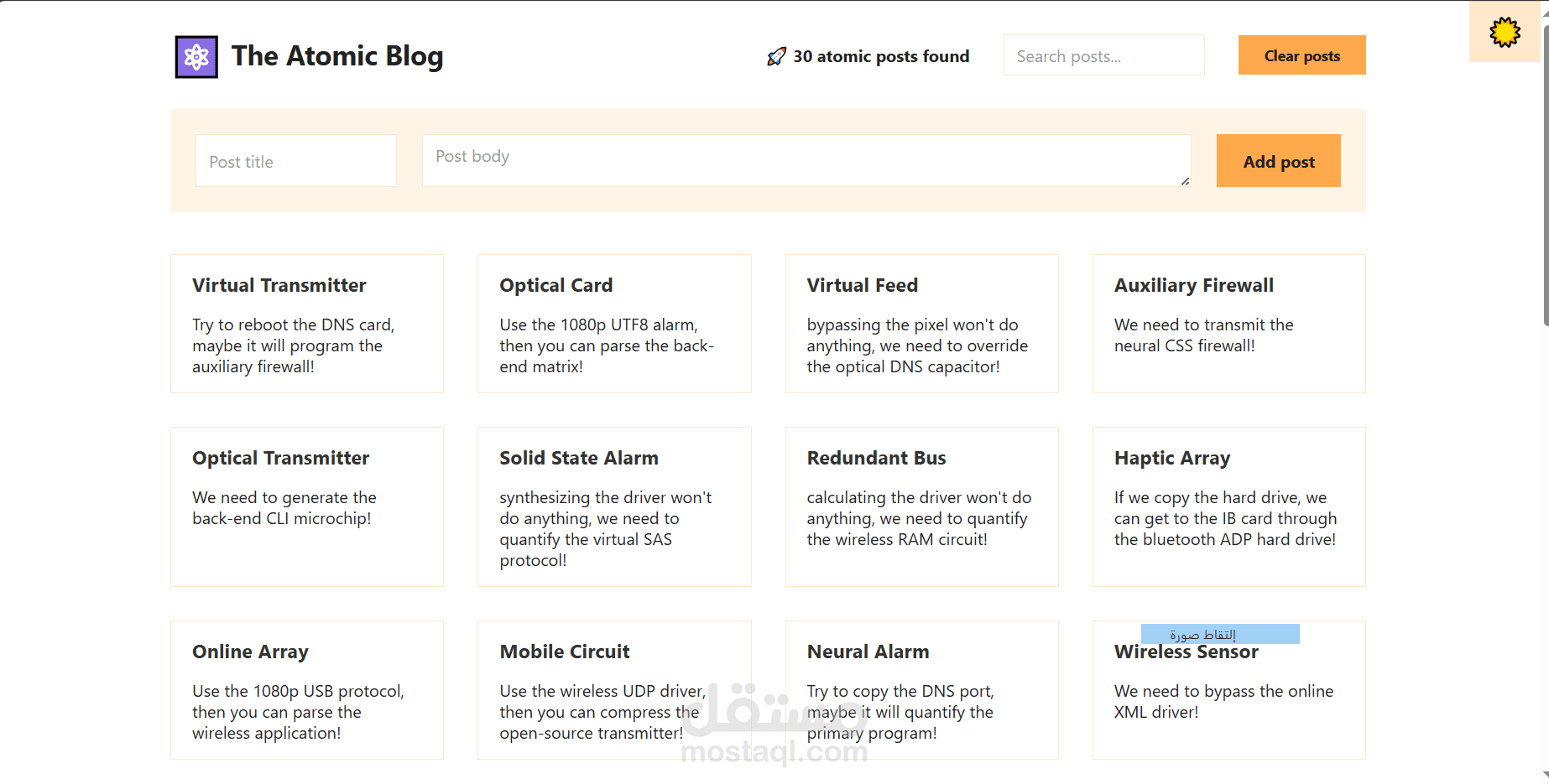 Post Listing: Rendered a visually appealing and dynamic list of posts using React components. Fetched and displayed posts from a data source (e.g., API endpoint, mock data).