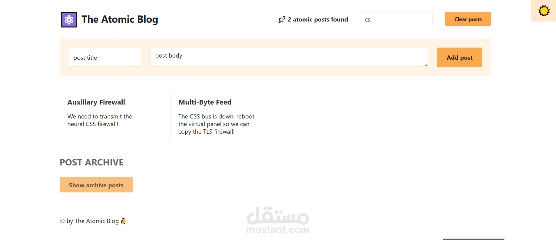 Post Search (Optional): Enhanced user experience by allowing users to search for specific posts by title, author, or keywords using React state and filtering logic. (Optional, depending on project scope)