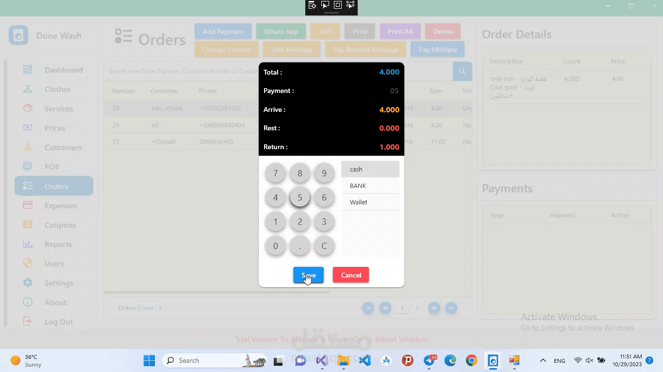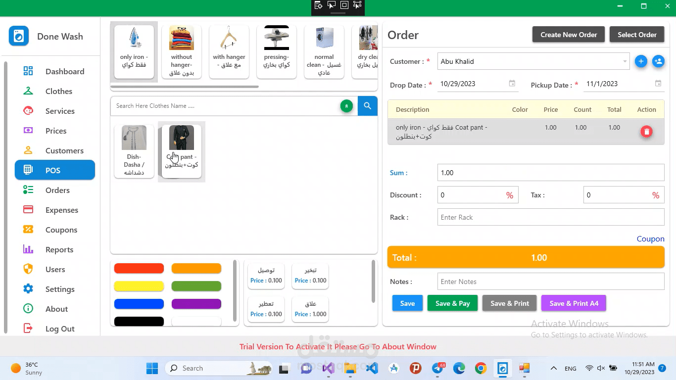 برنامج متكامل لادارة محلات غسيل الملابس. حيث يقوم بإدارة المخزون والتعامل مع الزبائن وادارة الحسابات وعرض التقارير والنتائج.
