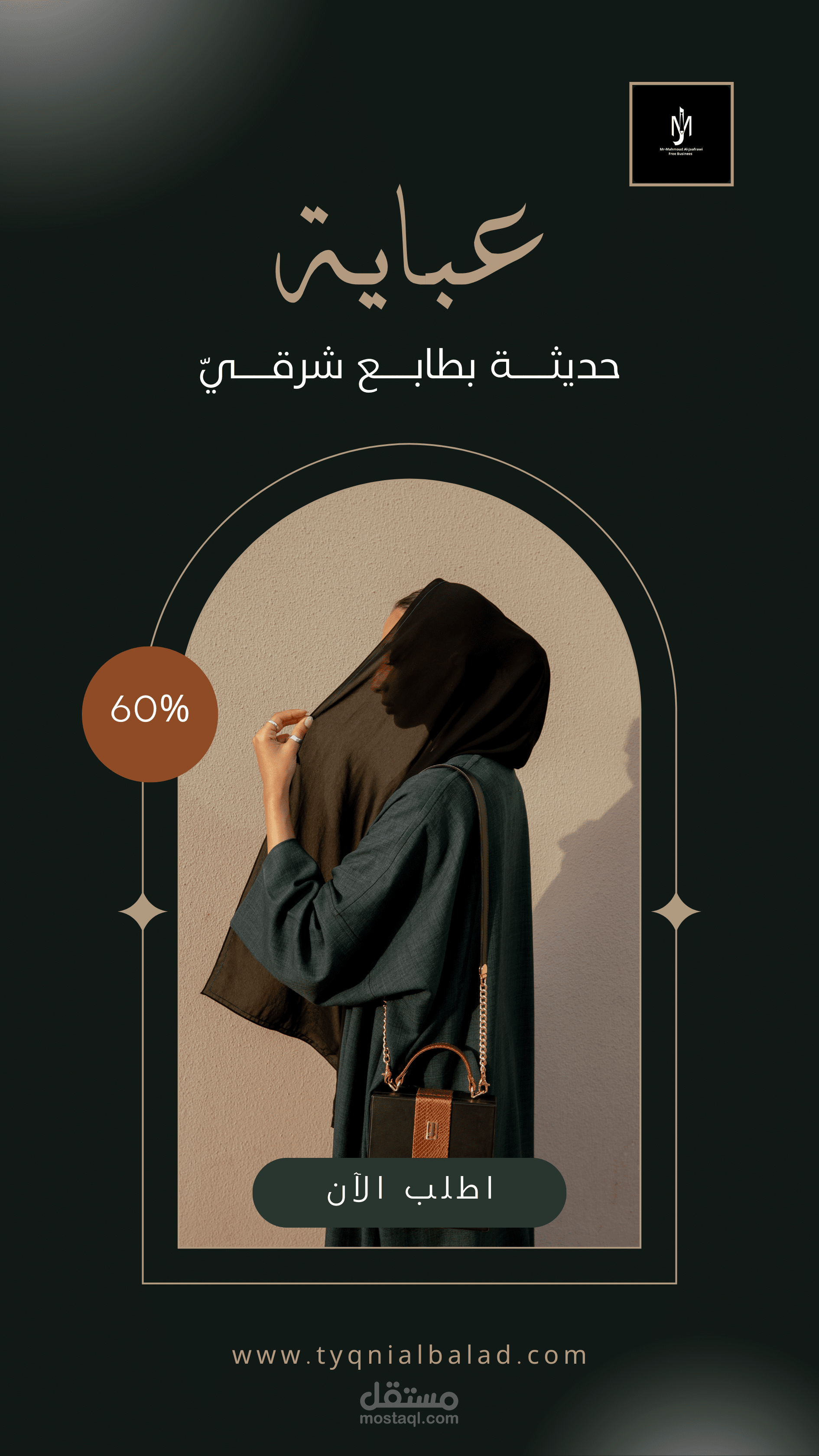 قصة Instagram اعلان اخضر حديث راقي لمتجر عبايات.
