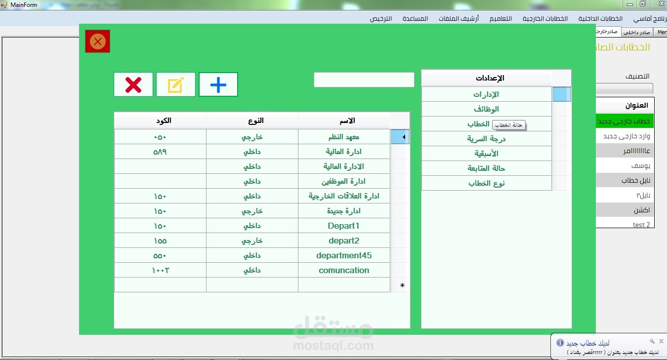 والتواصل بين الادارات التابعة للؤسسسة وخارج المؤسسة
