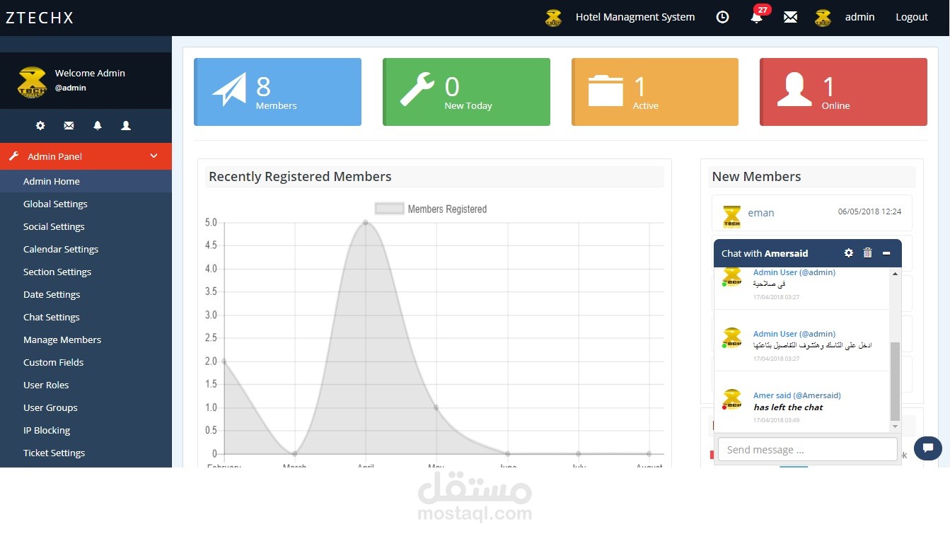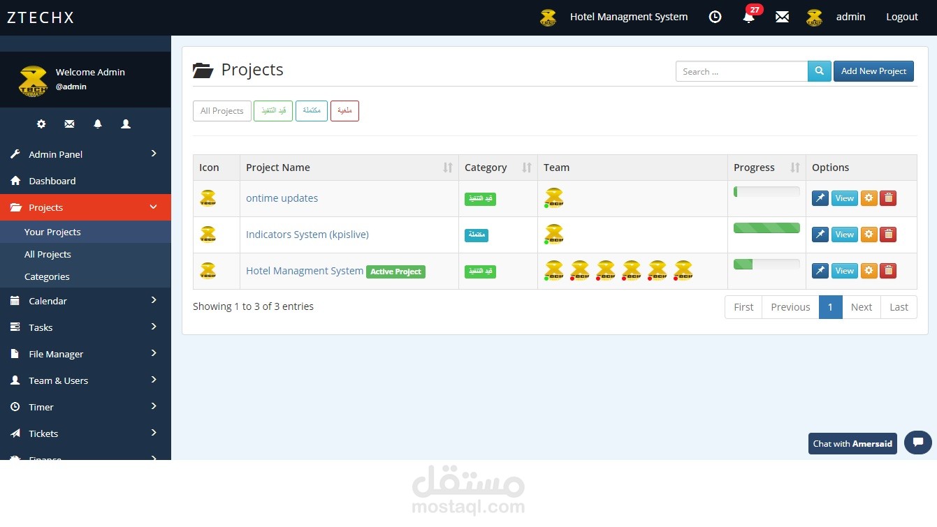- محادثات فورية بين اعضاء الفريق والمشروع