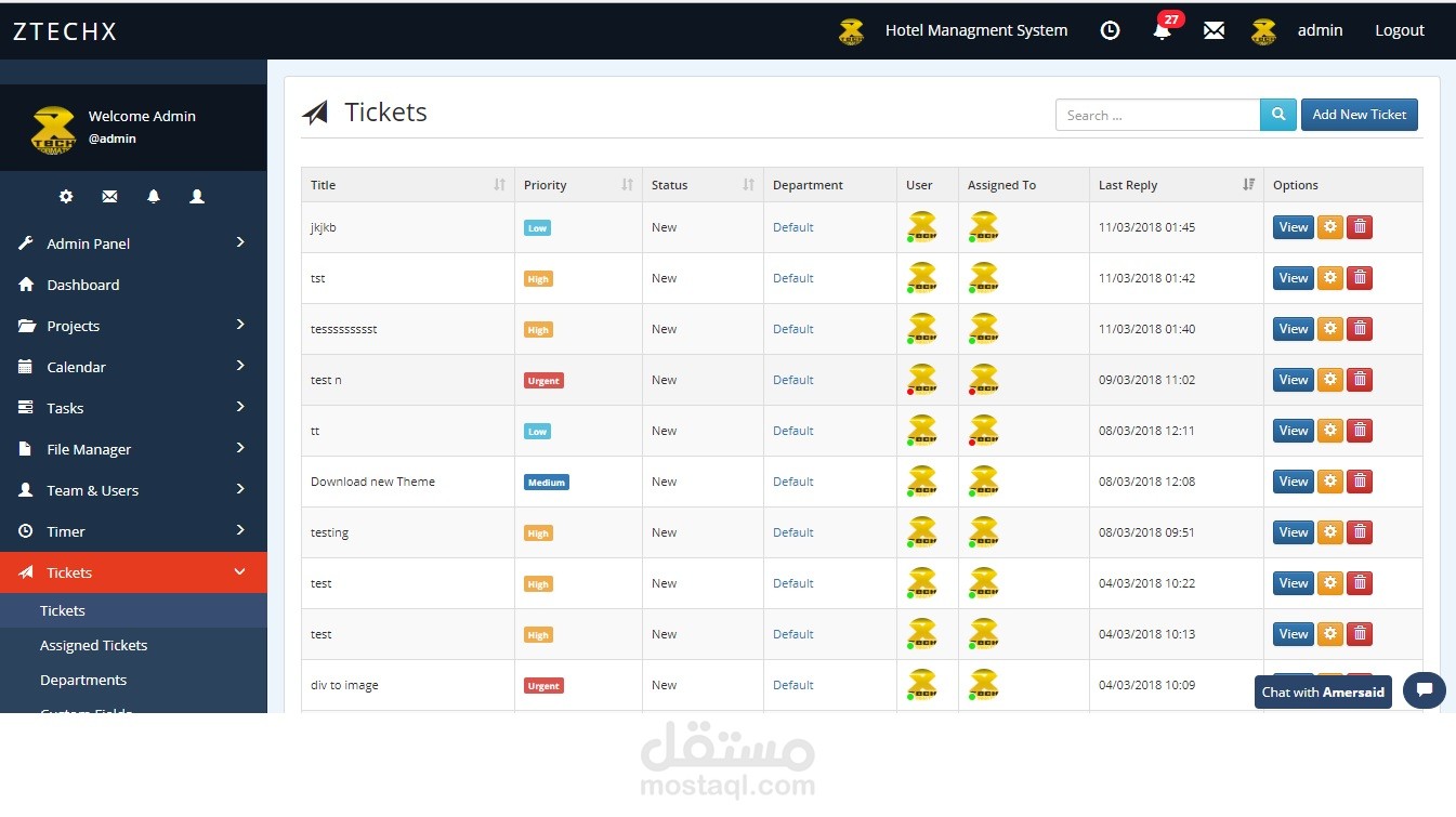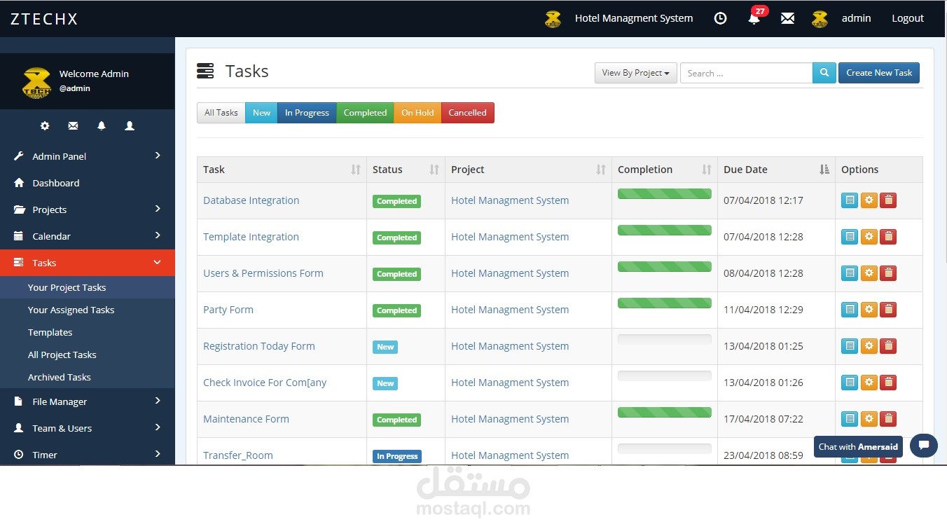 ادارة المشاريع - تقسيم المشروع الى مهام - المهام لها مواعيد للبدأ والانتهاء - اضافة الموظفين او العمال الى المشروع - تعيين رئيس الفريق ومدير المشروع - توزيع المهام على الموظفين والعمال - متابعة سير عمل المشروع من البداية الى النهاية - ادارة الحسابات المالية - ادارة تذاكر العملاء او الشكاوى او الملاحظات - محادثات فورية بين اعضاء الفريق والمشروع - يمكن لمالك المشروع الدخول بحسابه لمتابعة المشروع ادارة الفواتير ادارة الموظفين والمستخدمين والصلاحيات