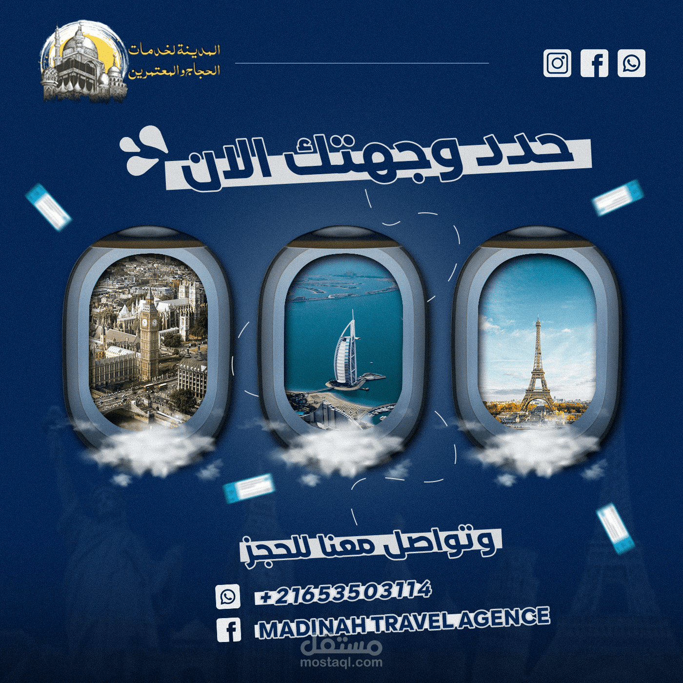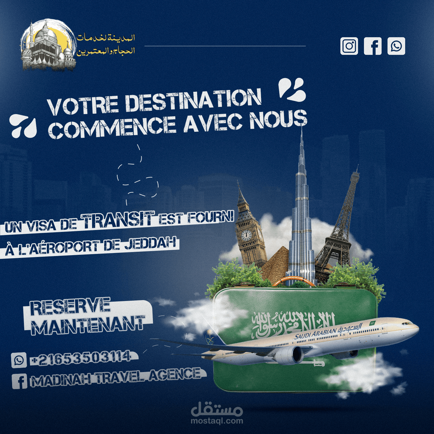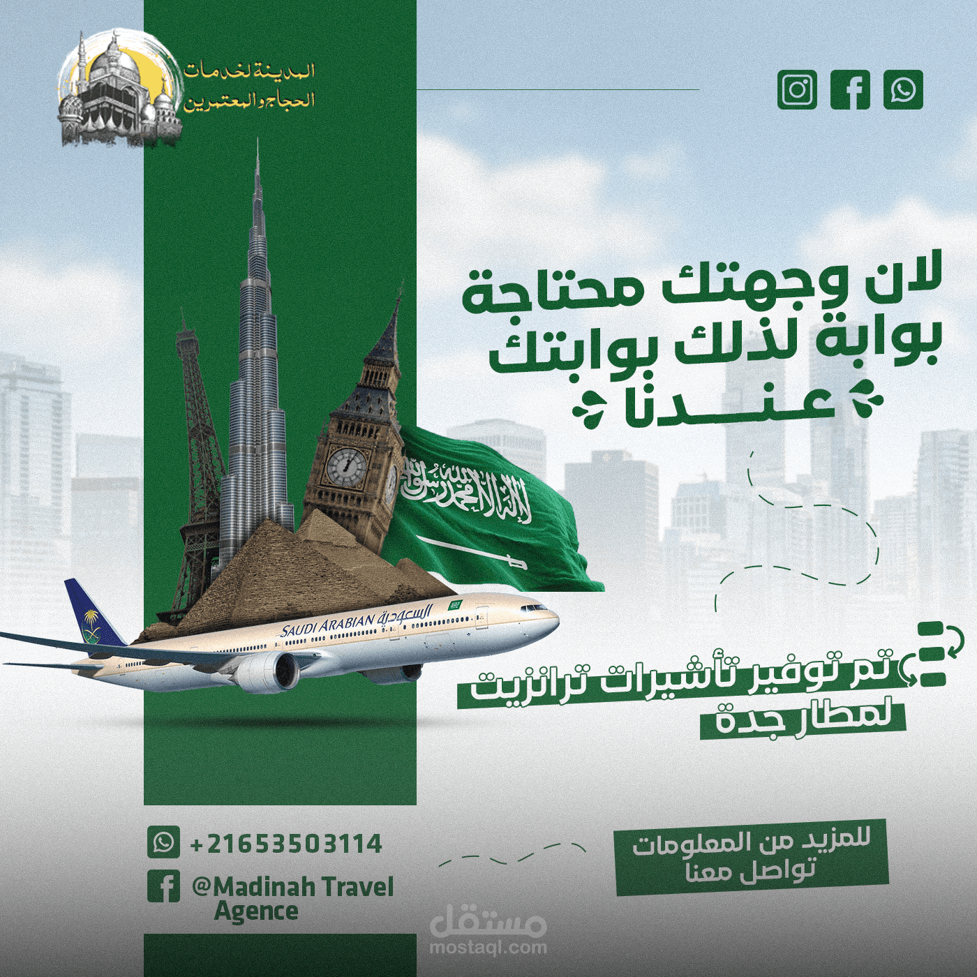 تصميمات سوشيال ميديا لشركة المدينة لخدمات الحجاج والمعتمرين التونسية