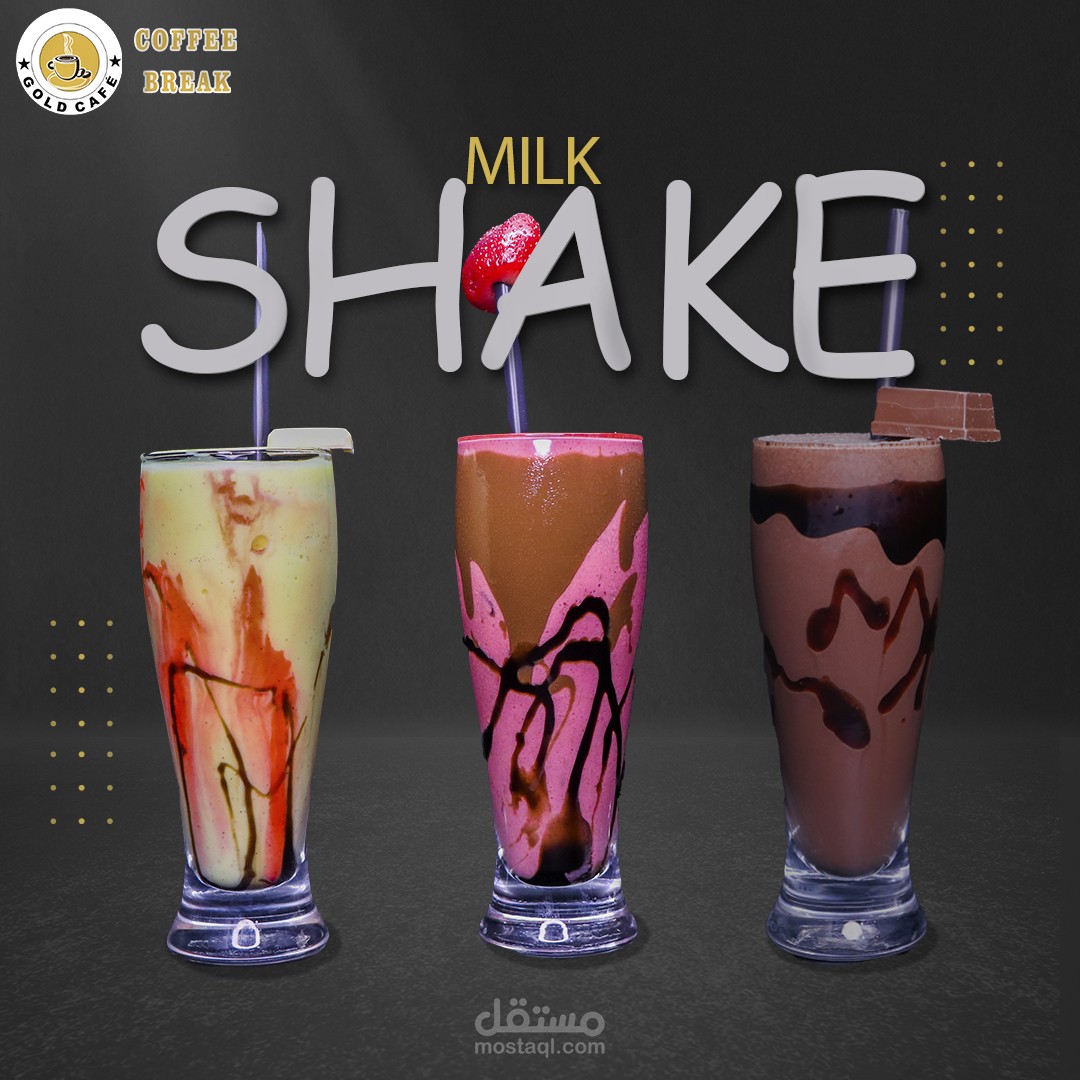 تم تصميم بوسترات سوشيال ميديا لكافية لعرض المينيو فعملت على تصاميم بسيطة وملفتة ومع اضافة لوغو الكافية بألوان مريحة للعين ومع كتابة اسم كل مشروب او الحلو