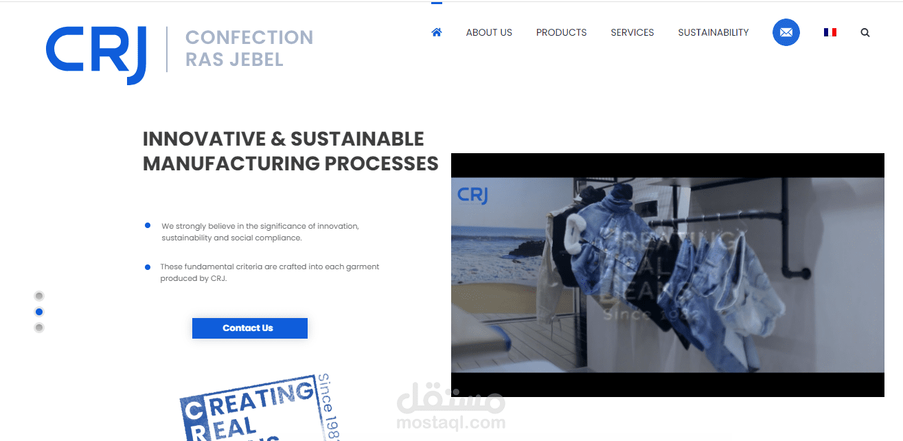 موقع CRJ - Confection Ras Jebel هو موقع لشركة متخصصة في صناعة الملابس. الشركة مقرها في رأس الجبل، تونس، وتقدم منتجات متنوعة في مجال الملابس الجاهزة. يتميز الموقع بتقديم معلومات حول منتجات الشركة، تفاصيل الاتصال، وتاريخ الشركة، بالإضافة إلى معلومات حول الشهادات والجودة. يمكن للعملاء والموزعين التعرف على تشكيلة المنتجات المتاحة، وطلب عينات، أو التواصل مباشرة مع الشركة للحصول على المزيد من المعلومات.