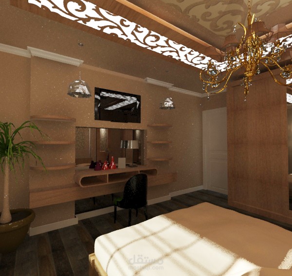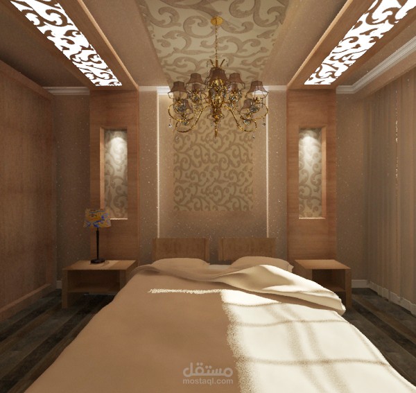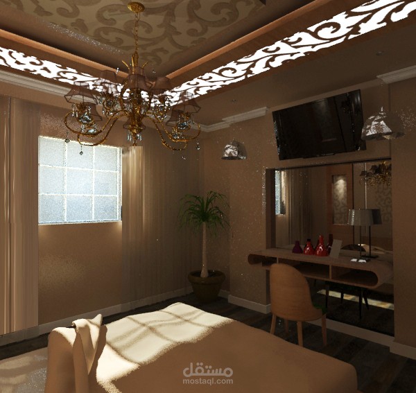تصميم ثري دي لغرفة نوم رئيسية بطراز نيو كلاسيك