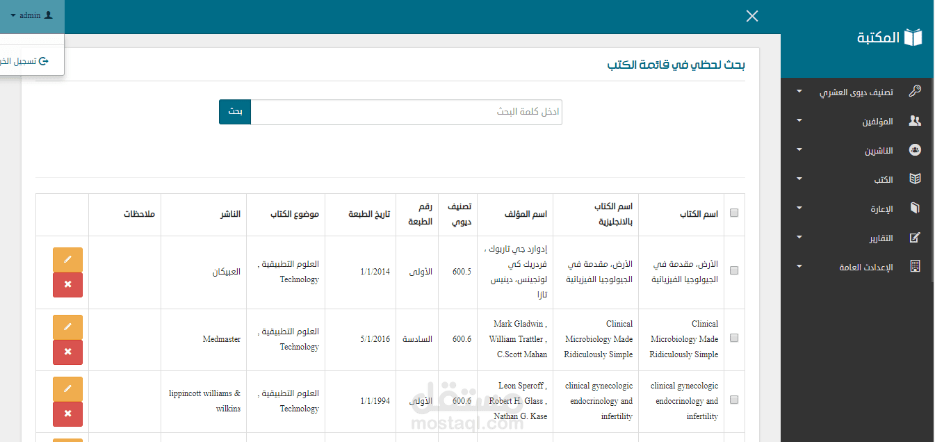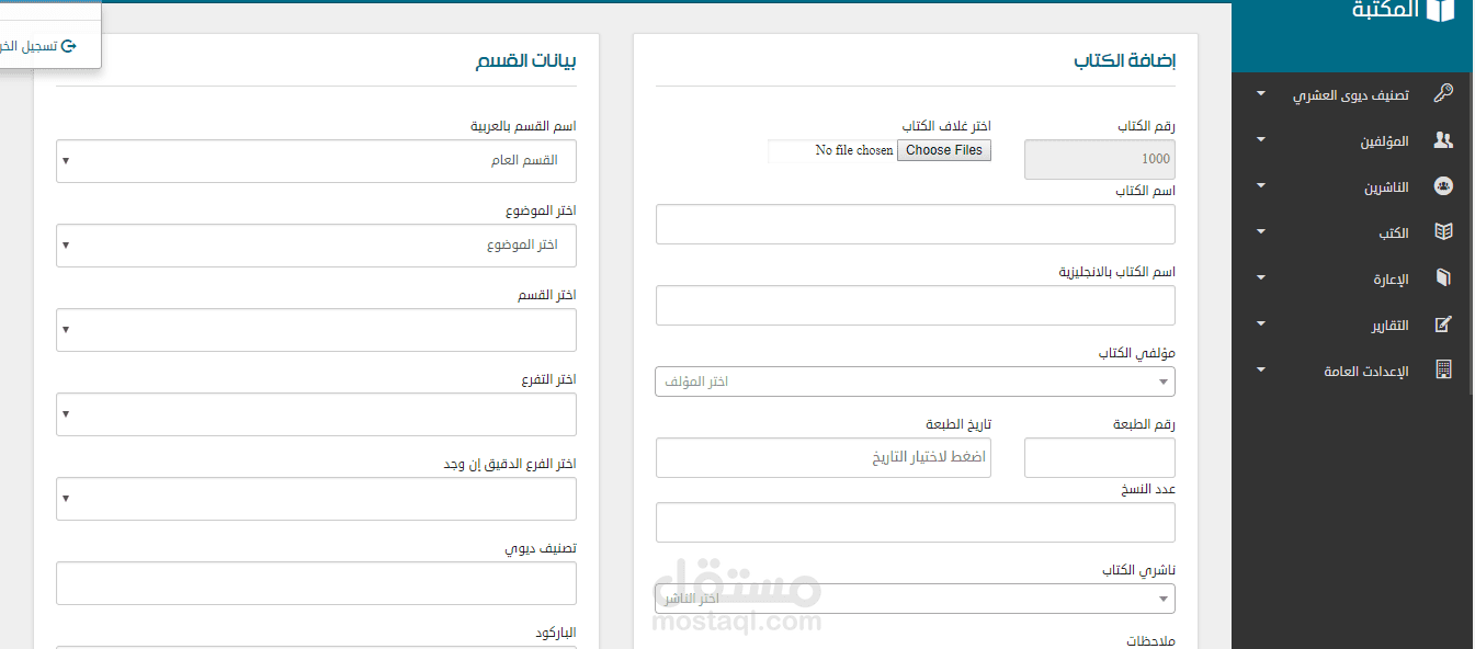 تطبيق ويب لأضافة وادارة المكتبة والكتب ونقطة الأستعارة والأسترجاع