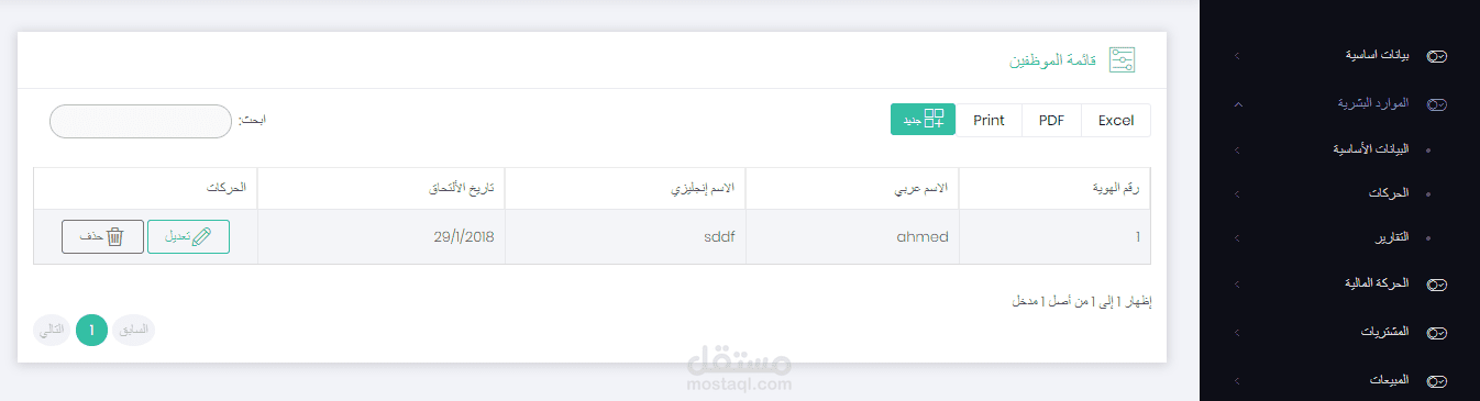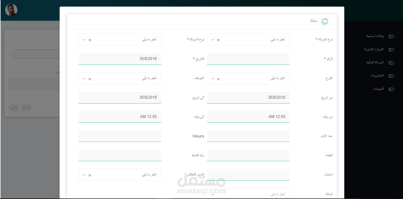 برنامج أدارة الموارد البشرية كامل البرنامج يعمل على الويب يمكن تحويله دسك توب فى حالة الطلب
