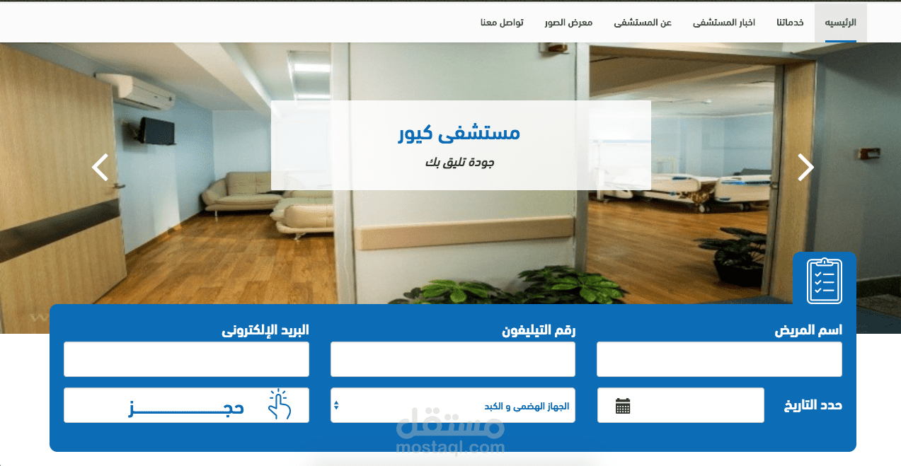 المستشفى بها جميع التخصصات الطبية والتخصصات الفرعية.وتستطيع ان تقوم بالحجز من خلال الموقع