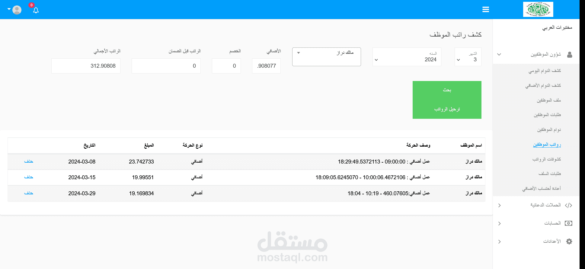 نظام hr يشمل ملفات الموظفيين والرواتب والحضور والأنصراف بستخدام موقع الفرع ويخدم مؤسسة تشمل 12 فرع مع نظام حوافز وخصومات ووالخ