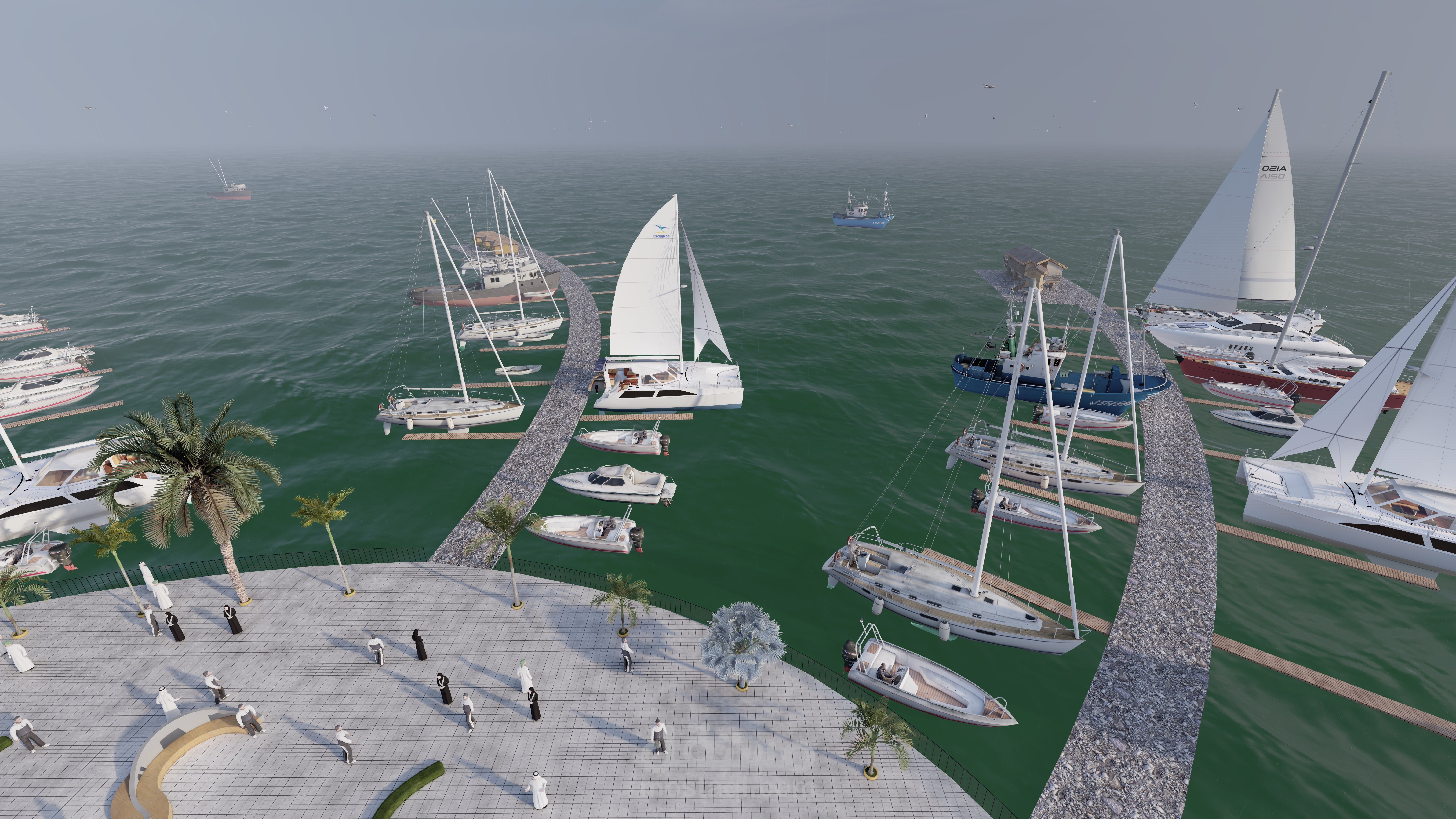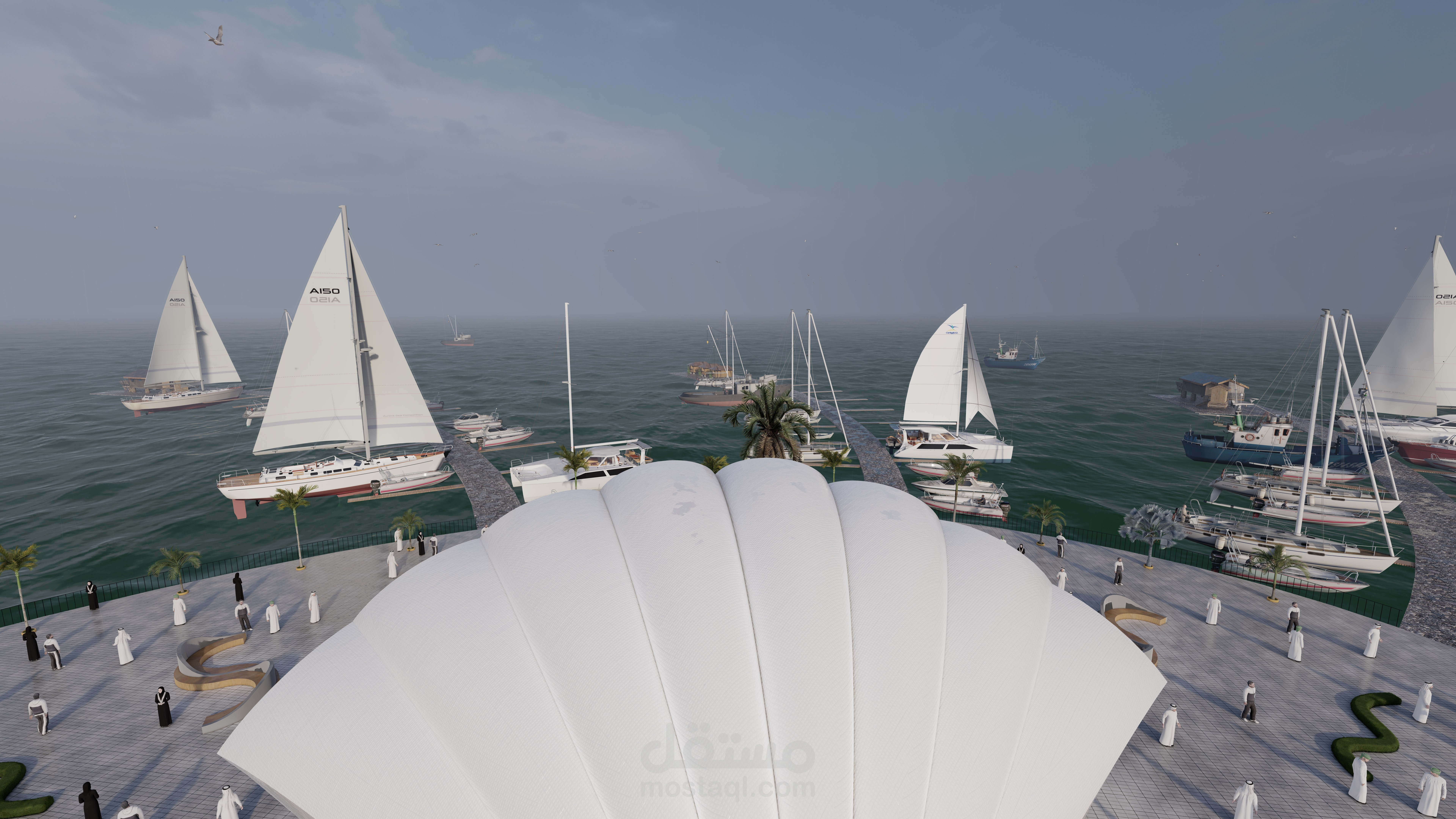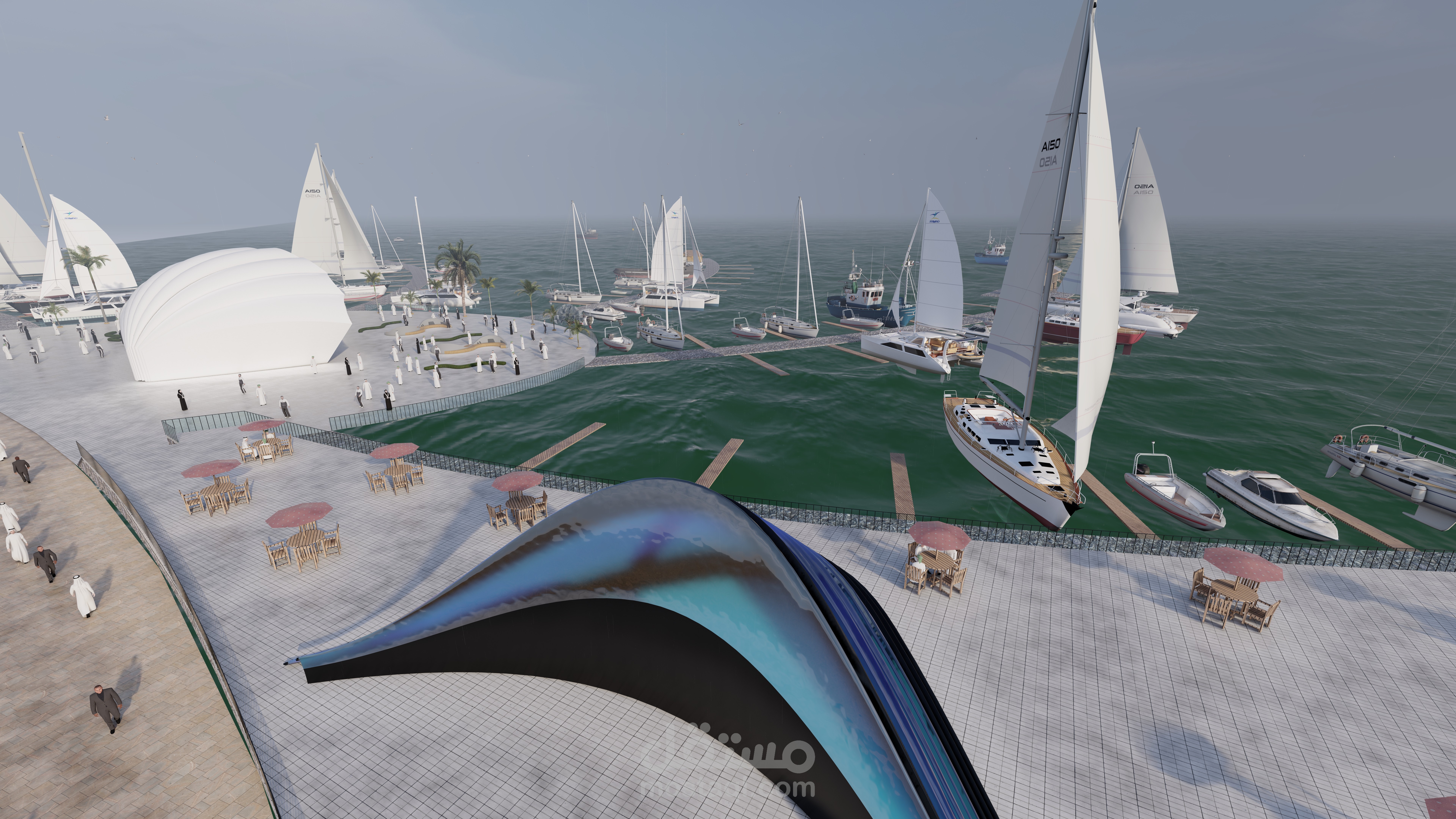 تحوي المارينا عدة أقسام : المرسى الخاص بالسفن بشكل حلزوني .... متحف مع مكتب استقبال على شكل مندمج بين صدفات البحر و المحار ... مطعم مع مقهى ....