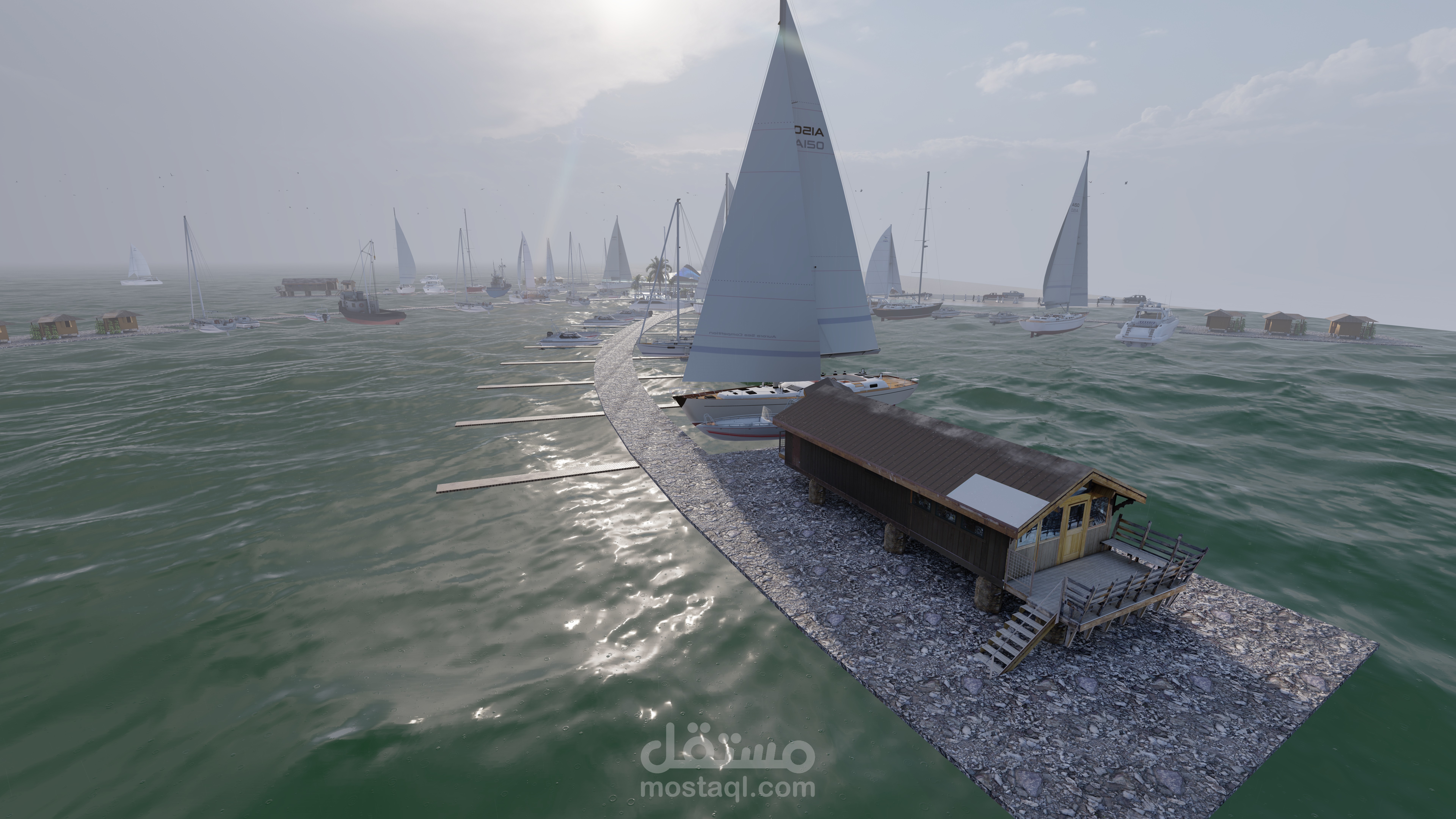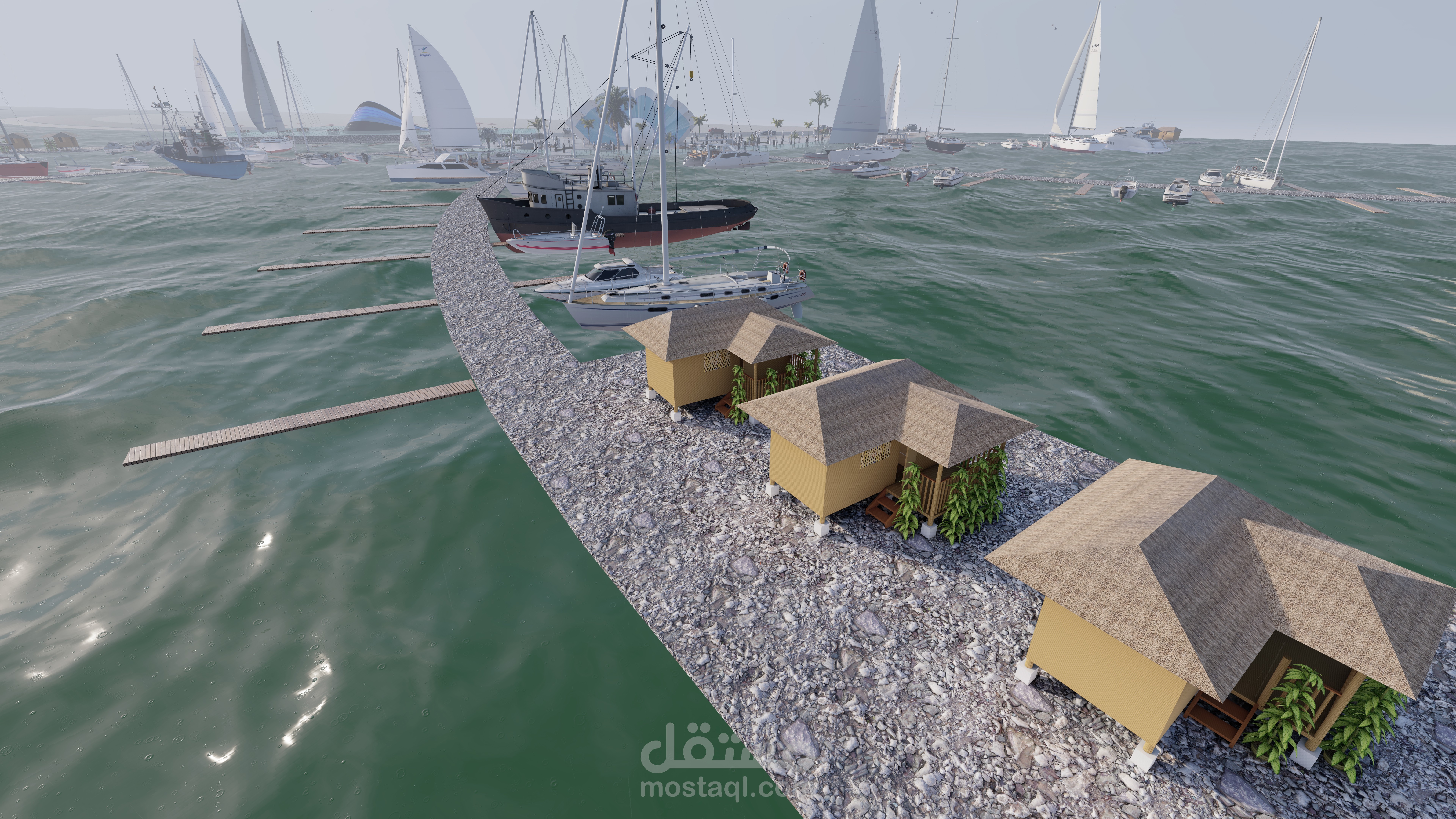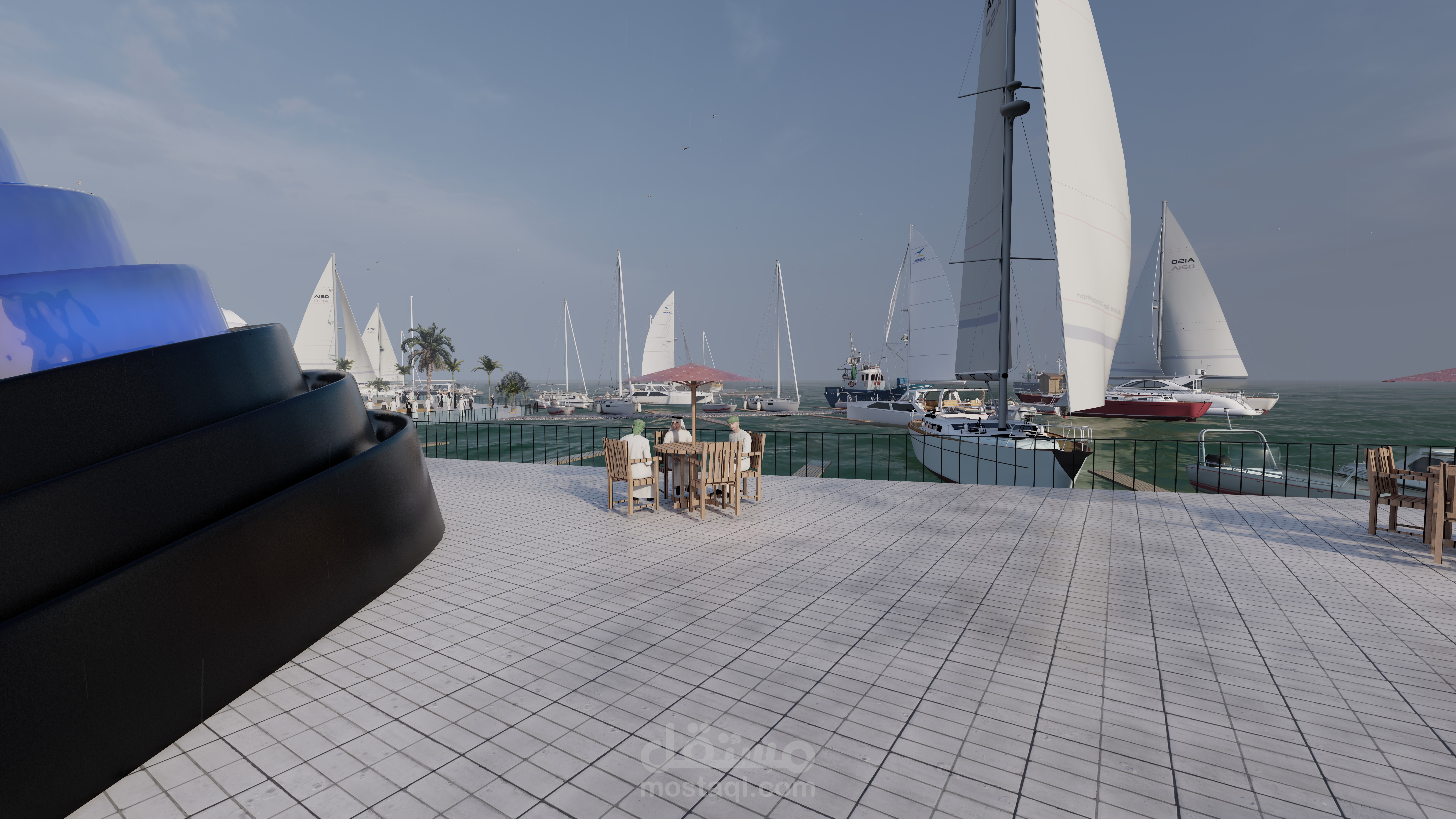 تحوي المارينا عدة أقسام : المرسى الخاص بالسفن بشكل حلزوني .... متحف مع مكتب استقبال على شكل مندمج بين صدفات البحر و المحار ... مطعم مع مقهى ....