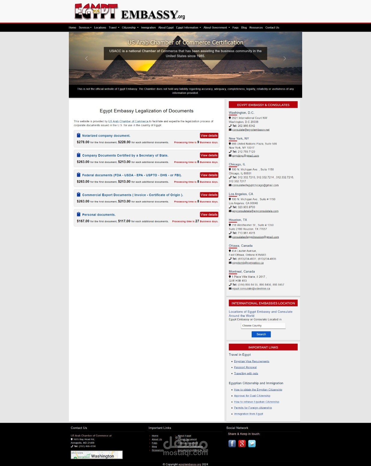 موقع Egypt Embassy هو موقع WordPress يقدم جميع خدمات السفارة المصرية في الولايات المتحدة اونلاين